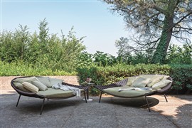 Vankúše na sedenie a operadlo sú vyrobené z vonkajších látok s rýchloschnúcimi výplňami, takže môžu byť vonku po celý rok bez toho, aby ich bolo potrebné chrániť pred dažďom.