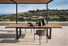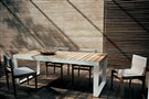 Kolekcia Spinnaker od spoločnosti Roda. Kolekcia obsahuje rozkladací jedálenský stôl, ktorý má rám z lakovanej nehrdzavejúcej ocele a doska stola je z teakového dreva.