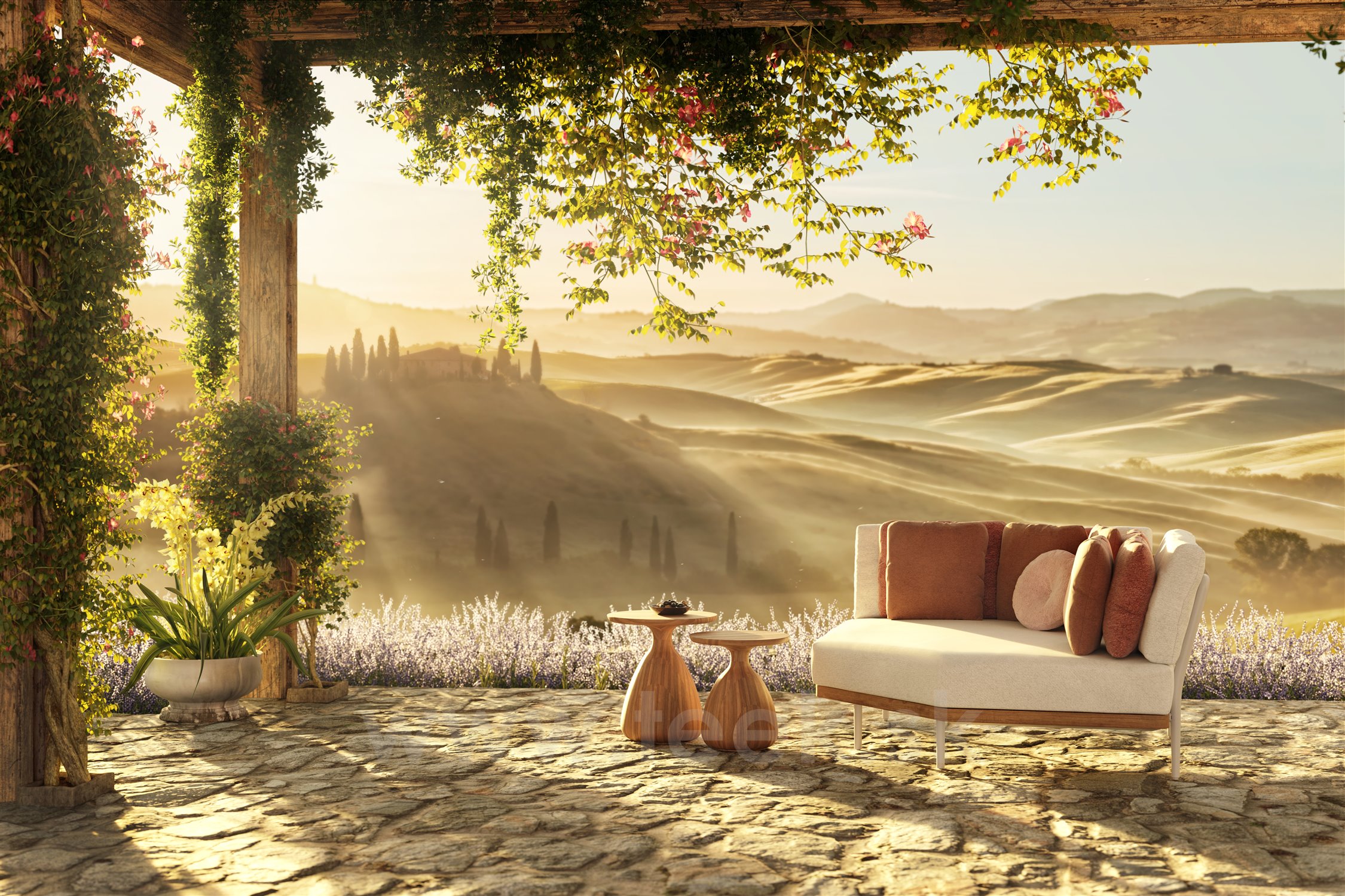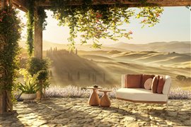 Rohový díl Flows, Manutti, 132x132x73 cm, rám hliník šedobéžová flint a teak, rám bez sedáků