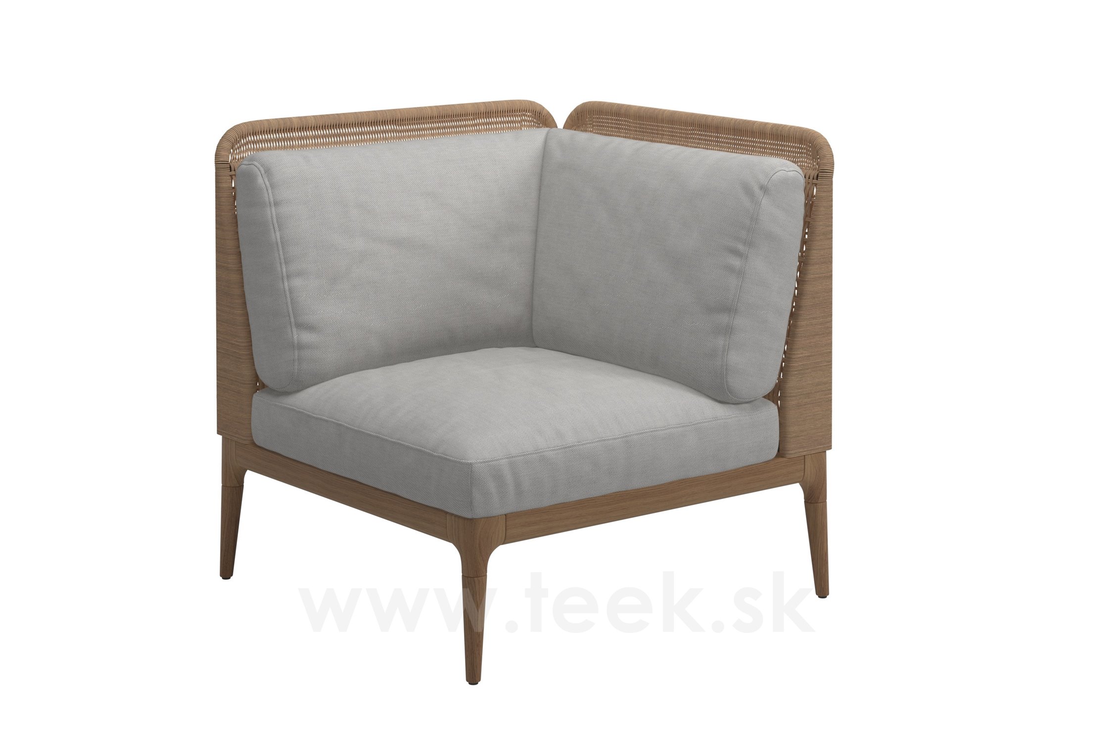 Rohový/ukončovací levostranný díl s nízkými zády Lima, Gloster, 81x81x78 cm, rám teak, výplet umělý ratan barva wheat, sedáky kat. D barva dle vzorníku