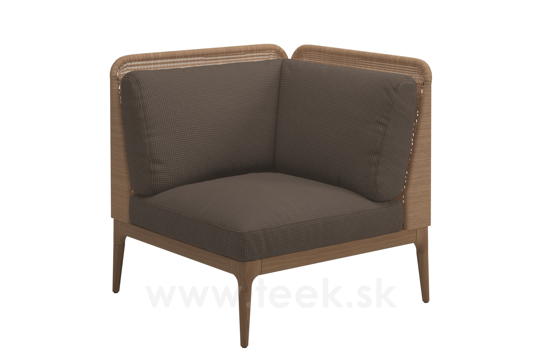 Rohový/ukončovací pravostranný díl s nízkými zády Lima, Gloster, 81x81x78 cm, rám teak, výplet umělý ratan barva wheat, sedáky kat. C barva dle vzorníku