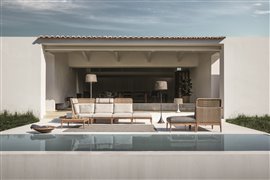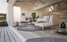 Rohový/ukončovací levostranný díl s nízkými zády Lima, Gloster, 81x81x78 cm, rám teak, výplet umělý ratan barva wheat, sedáky kat. B barva dle vzorníku
