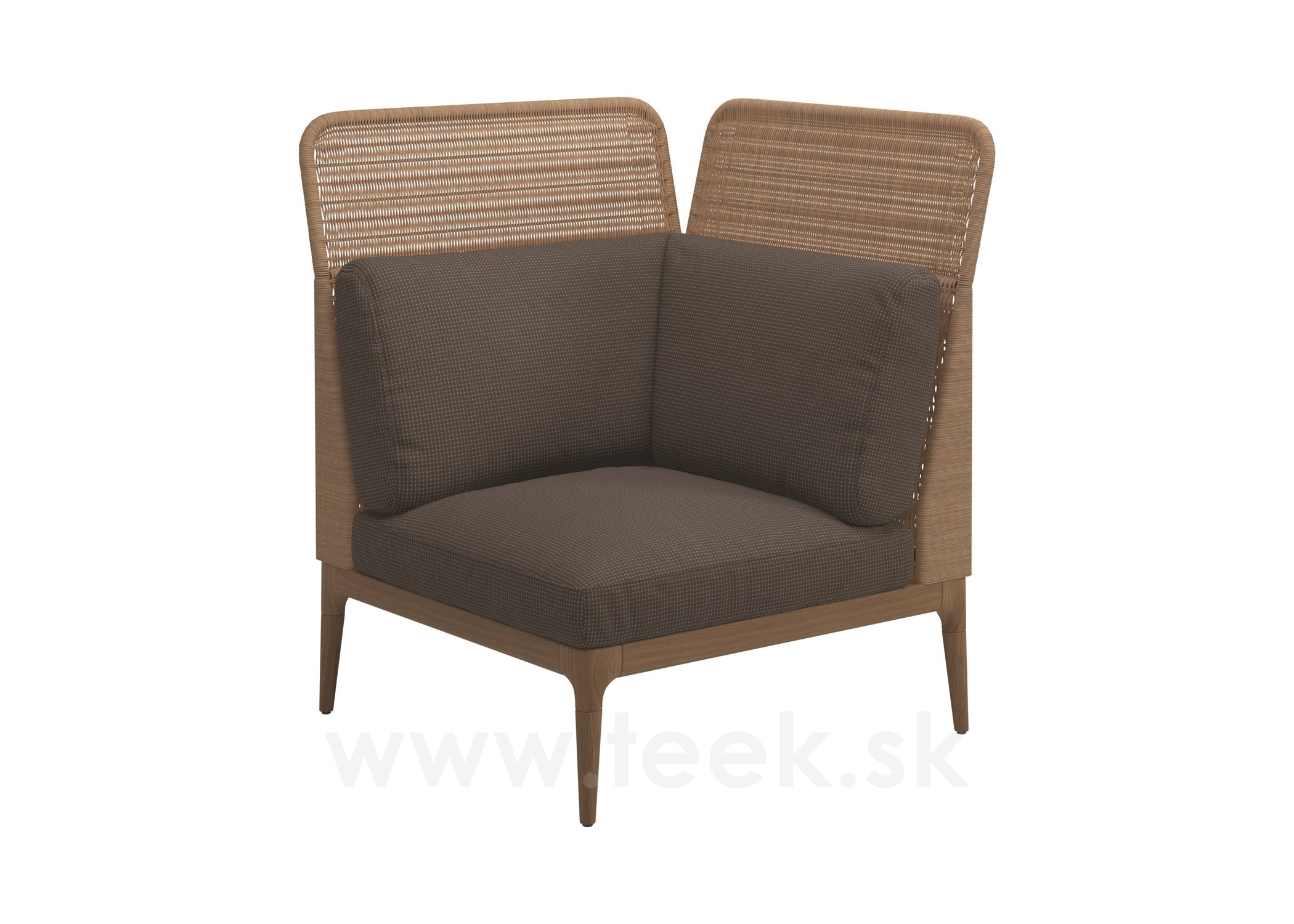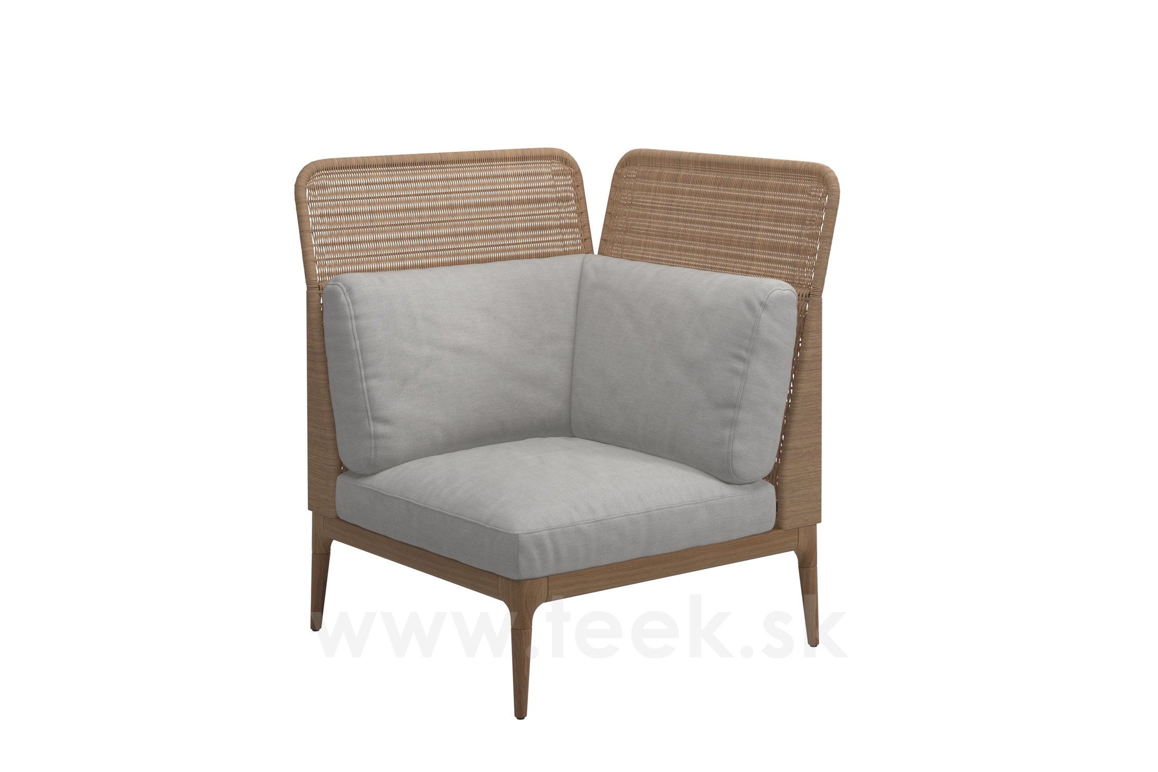 Rohový/ukončovací pravostranný díl s vysokými zády Lima, Gloster, 88x88x108 cm, rám teak, výplet umělý ratan barva wheat, sedáky kat. B barva dle vzorníku