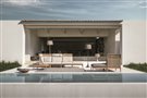Rám: teakové drevo Prútie: poškriabaný umelý ratan Vankúše na sedenie: vonkajšia tkanina - farba podľa vzoru, výplne v kvalite outdoor. Rozmery: rohový diel s vysokým operadlom 88x88x108 cm (š x h x v) Doplnkové: opierka hlavy sa dá dokúpiť.