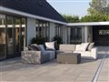 Rohový díl k modulové sedací sestavě Vino značky Persoon. Celopolstrovaný díl je z venkovní látky. Potahová látka je odolná 100% akrylová tkanina (Sunbrella), která je světlostálá, voděodpudivá, snadno se čistí, pevná a odolná proti otěru a oděru.