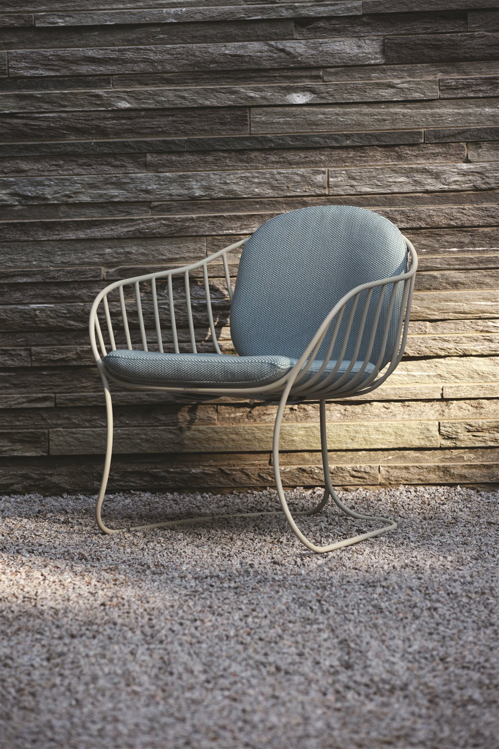 Vonkajšie kreslá sú celé vyrobené z lakovanej nehrdzavejúcej ocele a majú neotrelý dizajn.