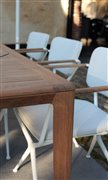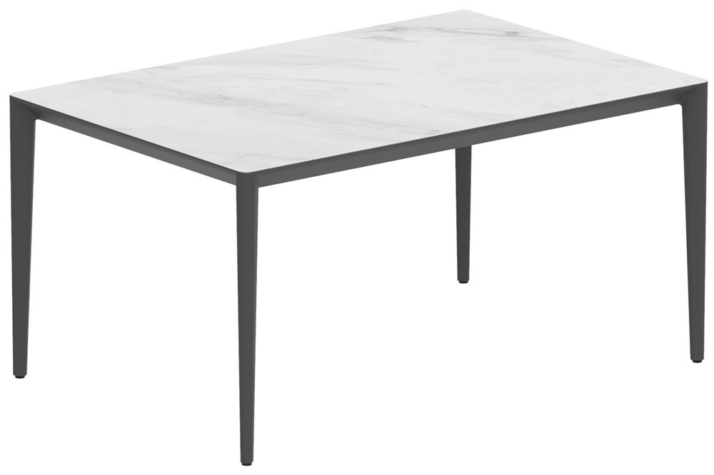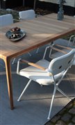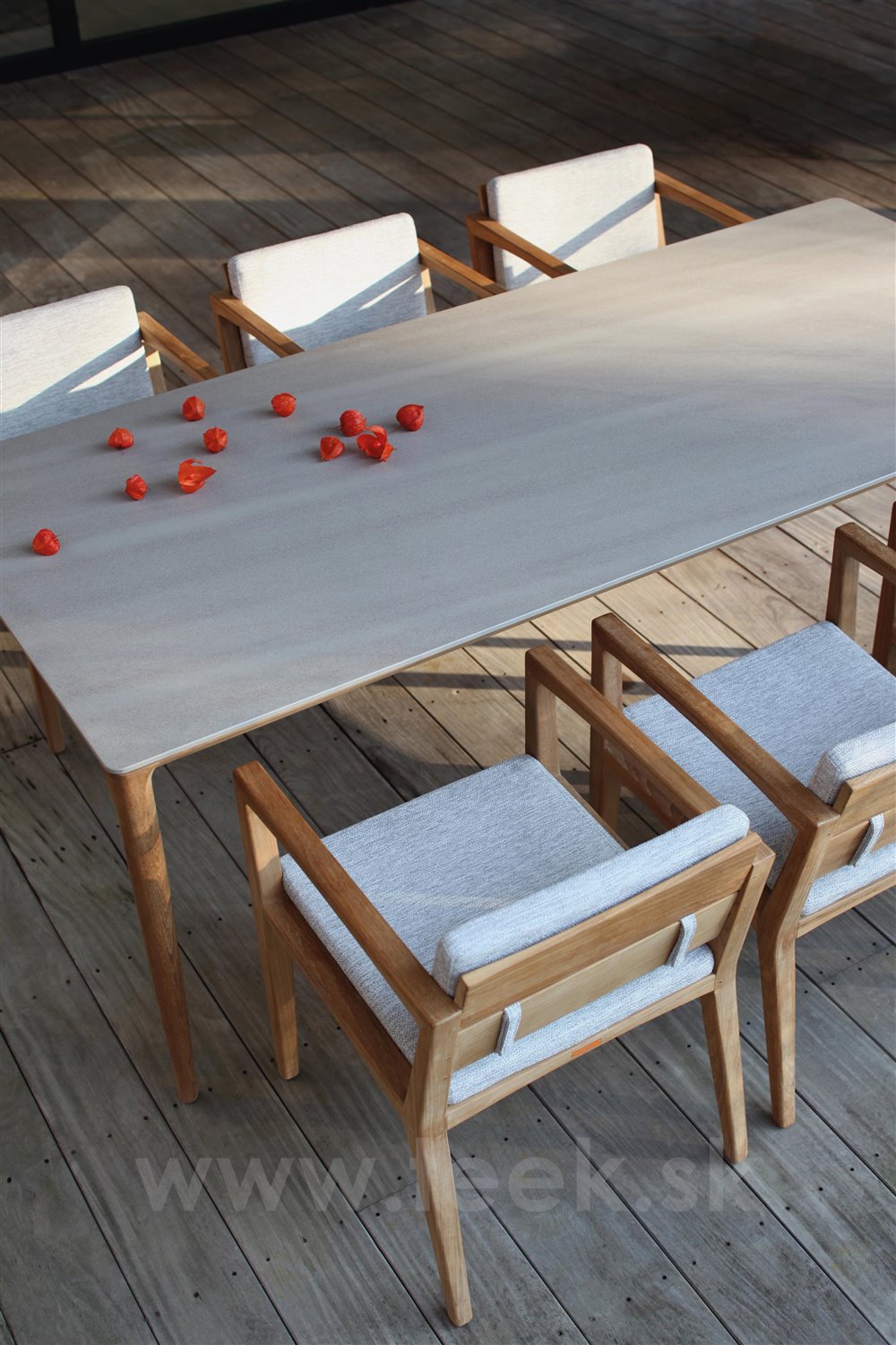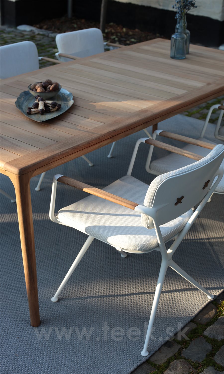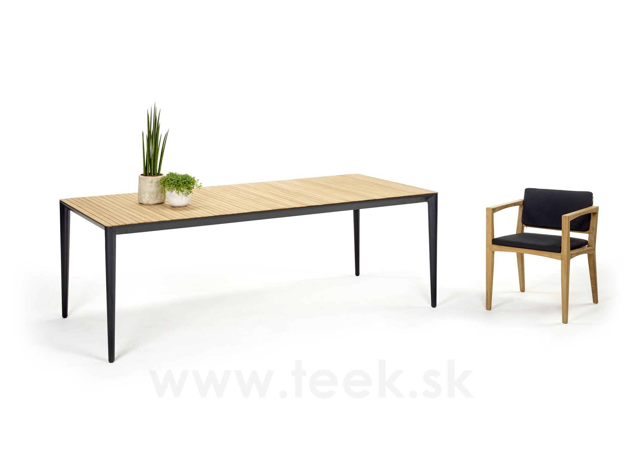 Kolekcia záhradných jedálenských stolov U-Nite od spoločnosti Royal Botania. Rám stola je profilovaný a má zaoblené krivky. Konštrukcia jedálenských stolov je vyrobená z lakovaného hliníka alebo teakového dreva. Stolové dosky sú vyrobené z keramiky alebo teakového dreva.