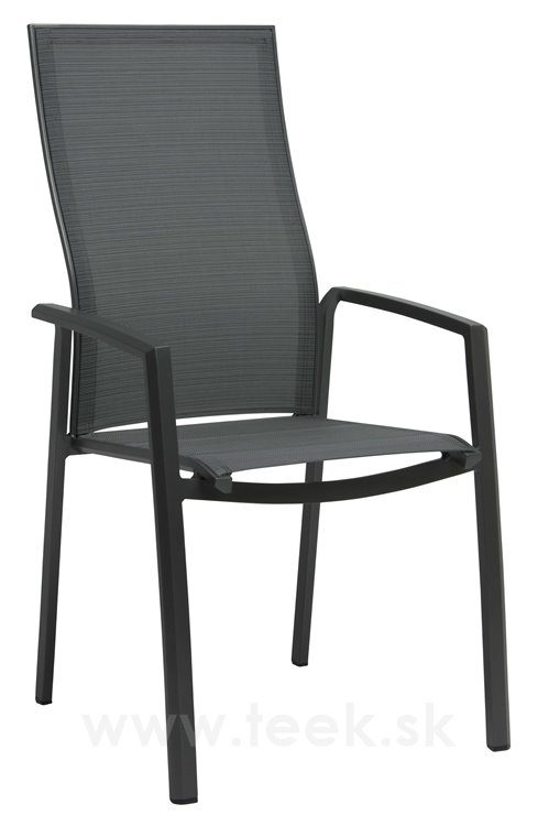 Stohovateľná záhradná jedálenská stolička s vysokým operadlom Kari by Stern v rôznych farbách.