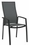 Stohovateľná jedálenská stolička Kari, Stern, 58x66x109 cm, rám lakovaný hliníkom antracitovo sivo-čierny, čalúnenie textílie karbónová čierna, podrúčky antracitovo sivo-čierne