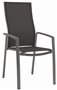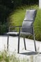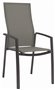 Stohovateľná jedálenská stolička Kari, Stern, 58x66x109 cm, grafitový hliníkový rám, striebornosivé textilné čalúnenie, grafitovo sivé podrúčky