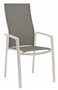 Stohovateľná jedálenská stolička Kari, Stern, 58x66x109 cm, biely lakovaný hliníkový rám, strieborné textilné čalúnenie, biele podrúčky