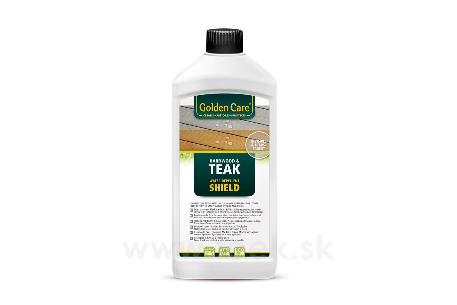 Golden Care Hardwood and Teak Shield je bezfarebný prípravok na báze vody, ktorý chráni teakové a tropické drevo pred škvrnami od potravín a nápojov (olej, kečup, červené víno, olivový olej atď.). Na povrchu dreva vytvára neviditeľnú ochrannú vrstvu, ktorá zabraňuje okamžitému vsiaknutiu škvŕn do dreva.