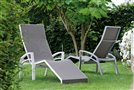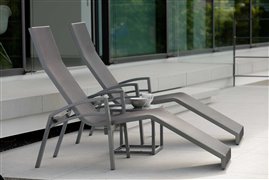 Hliníkové relaxačné záhradné ležadlo v rôznych farbách. Rám je z práškovo lakovaného hliníka a čalúnenie je z pružného textilu. Vždy sú k dispozícii verzie s piestom alebo bez piesta (do sauny alebo wellness).