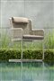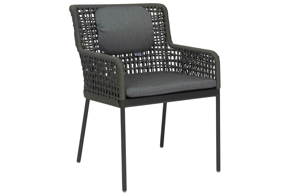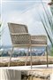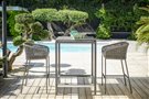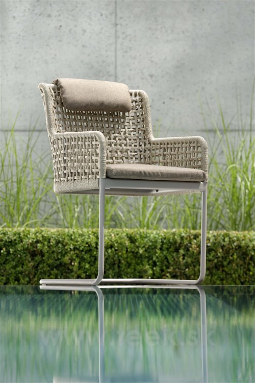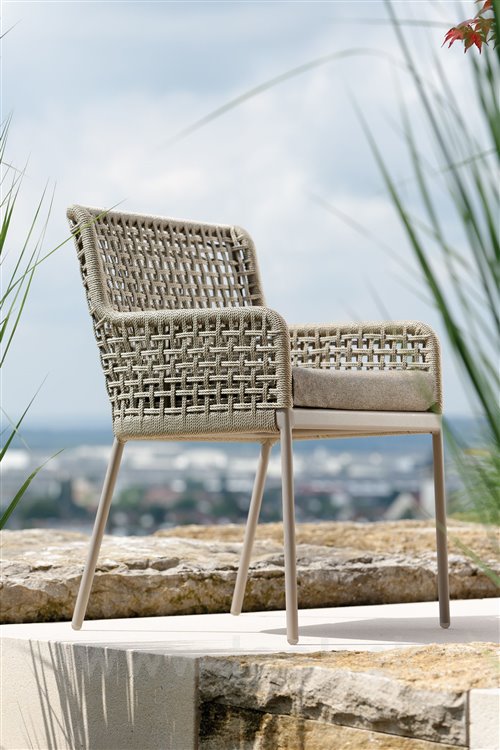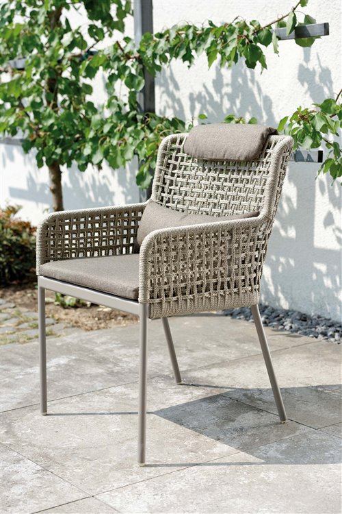 Zahradní jídelní a barová křesla Greta mají rám z práškově lakovaného hliníku, výplet je lankový, sedáky a opěrné polštáře jsou z venkovní látky. Výplň sedáků je z běžné pěny. Dostupné je nejen jídelní a barové křeslo, ale i konzolové křeslo, ve více barvách.