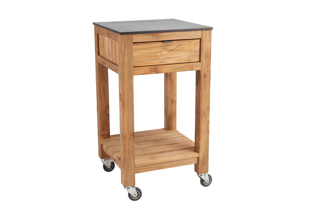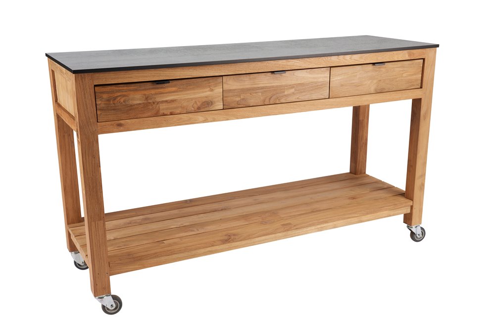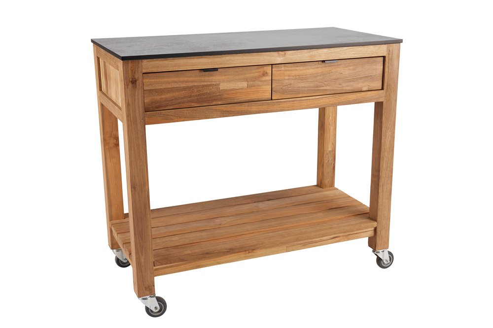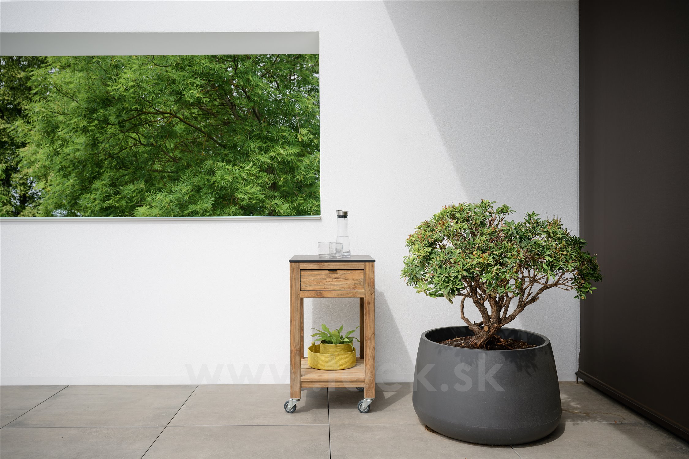 Praktické servírovacie vozíky z teakového dreva v rôznych veľkostiach.