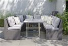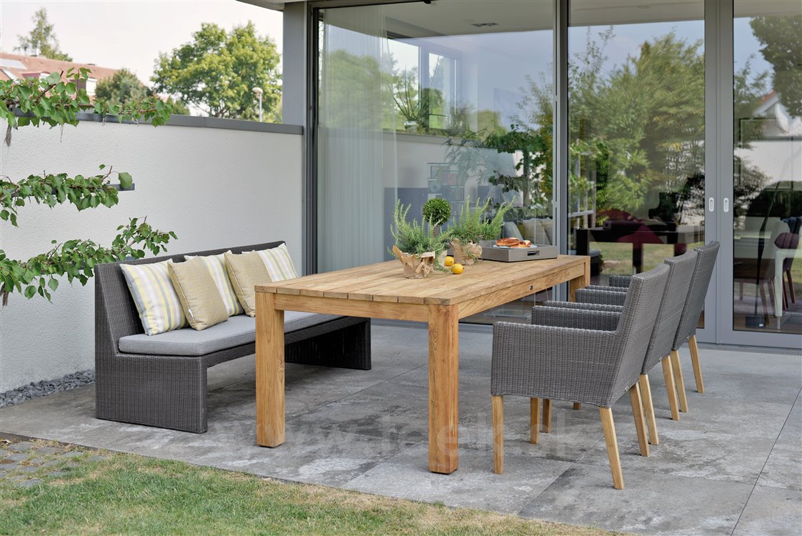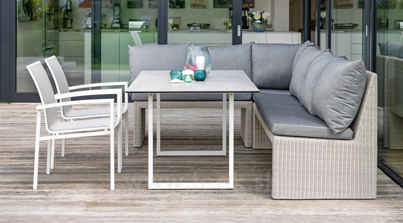 Jednotlivé kusy možno používať samostatne alebo vďaka ich vzájomnej prepojiteľnosti vytvoriť štýlovú jedálenskú rohovú sedacie súpravu z umelého ratanu.