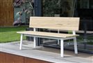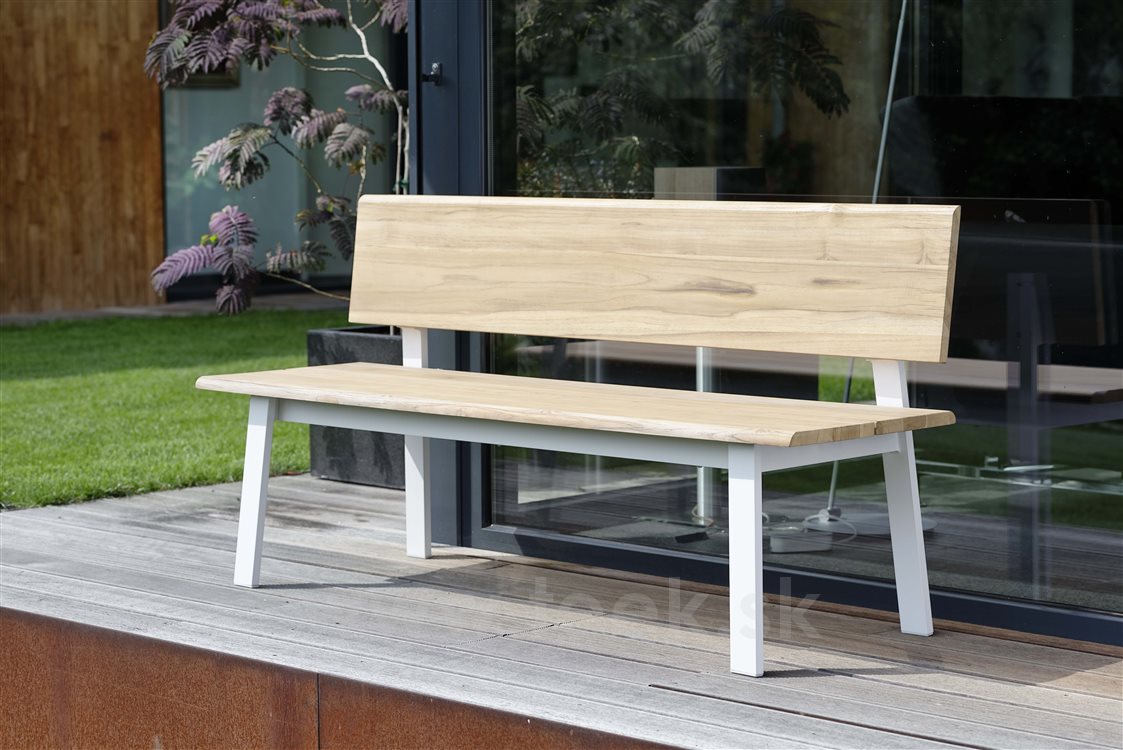 Hliníková zahradní lavice v různých barvách, s teakovým sedákem a opěrkou.