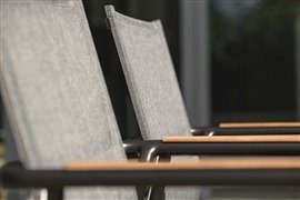 Stoličky je možné zakúpiť s hliníkovými alebo teakovými podrúčkami.