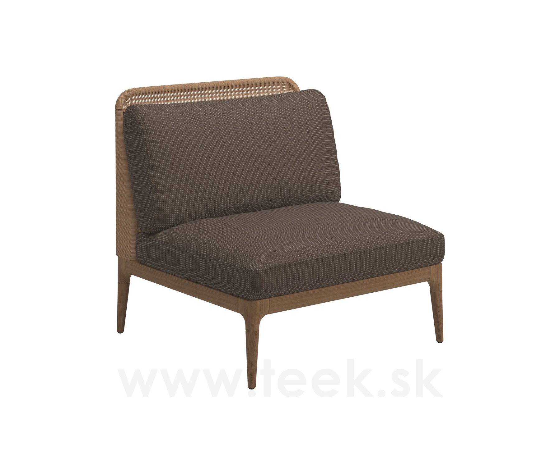 Středový díl s nízkými zády Lima, Gloster, 81x81x78 cm, rám teak, výplet umělý ratan barva wheat, sedáky kat. D barva dle vzorníku