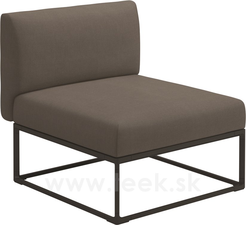 Malý stredový prvok 75 cm pre modulárnu záhradnú súpravu na sedenie Maya od spoločnosti Gloster. Rám je vyrobený z lakovaného hliníka, čalúnenie je z vonkajších odolných látok. Výplň je určená na celoročné použitie.