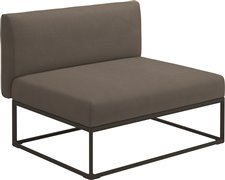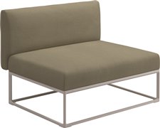 Stredne veľký stredový prvok pre modulárnu záhradnú súpravu na sedenie Maya od spoločnosti Gloster. Rám je vyrobený z lakovaného hliníka, čalúnenie je z vonkajších odolných látok. Výplne sú vhodné na celoročné použitie.