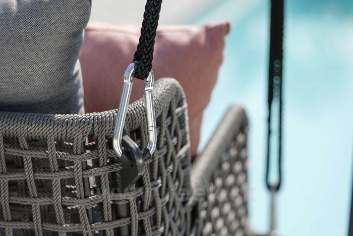 Rám hojdačky je vyrobený z hliníka, ktorý je opletený káblovým opletom
