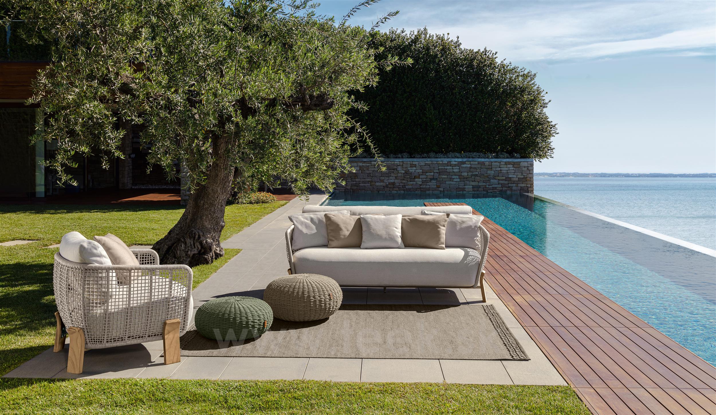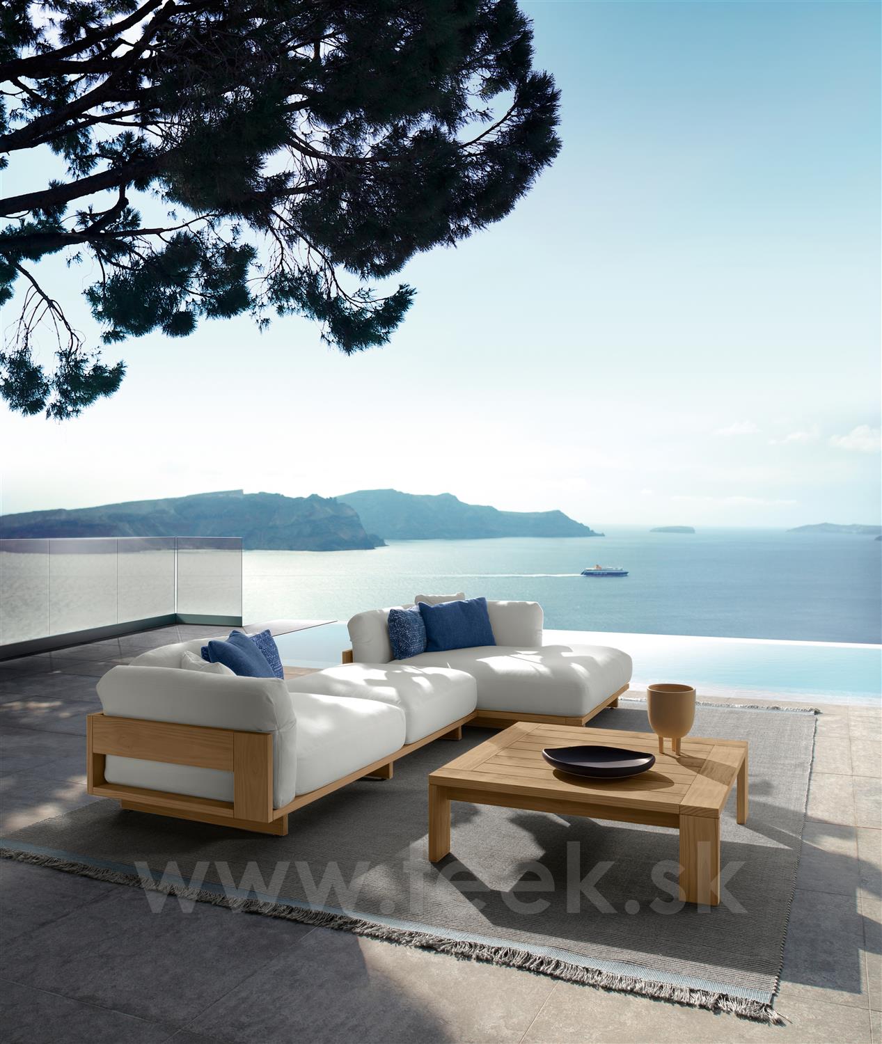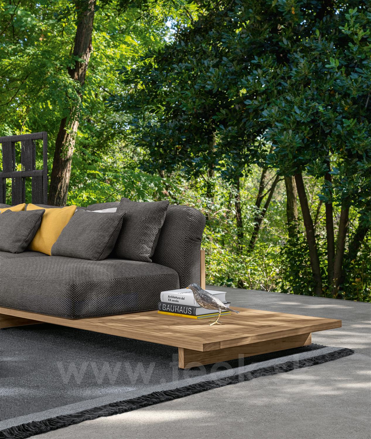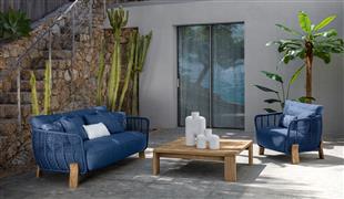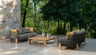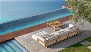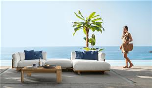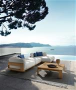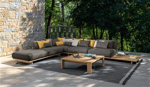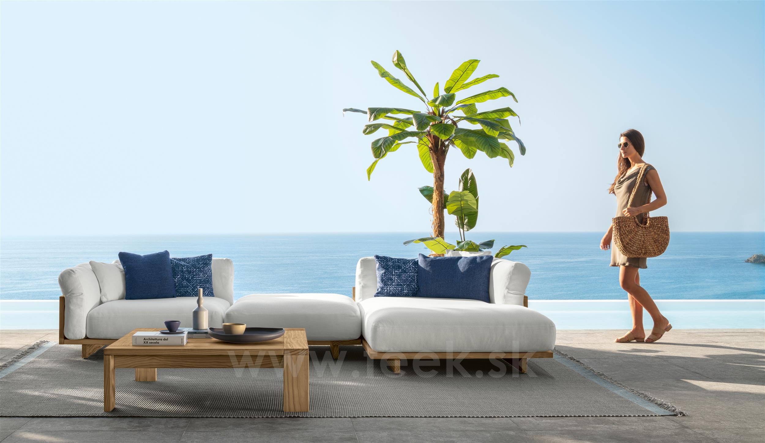 Dizajnová modulárna vonkajšia sedacia súprava z dreva accoya.