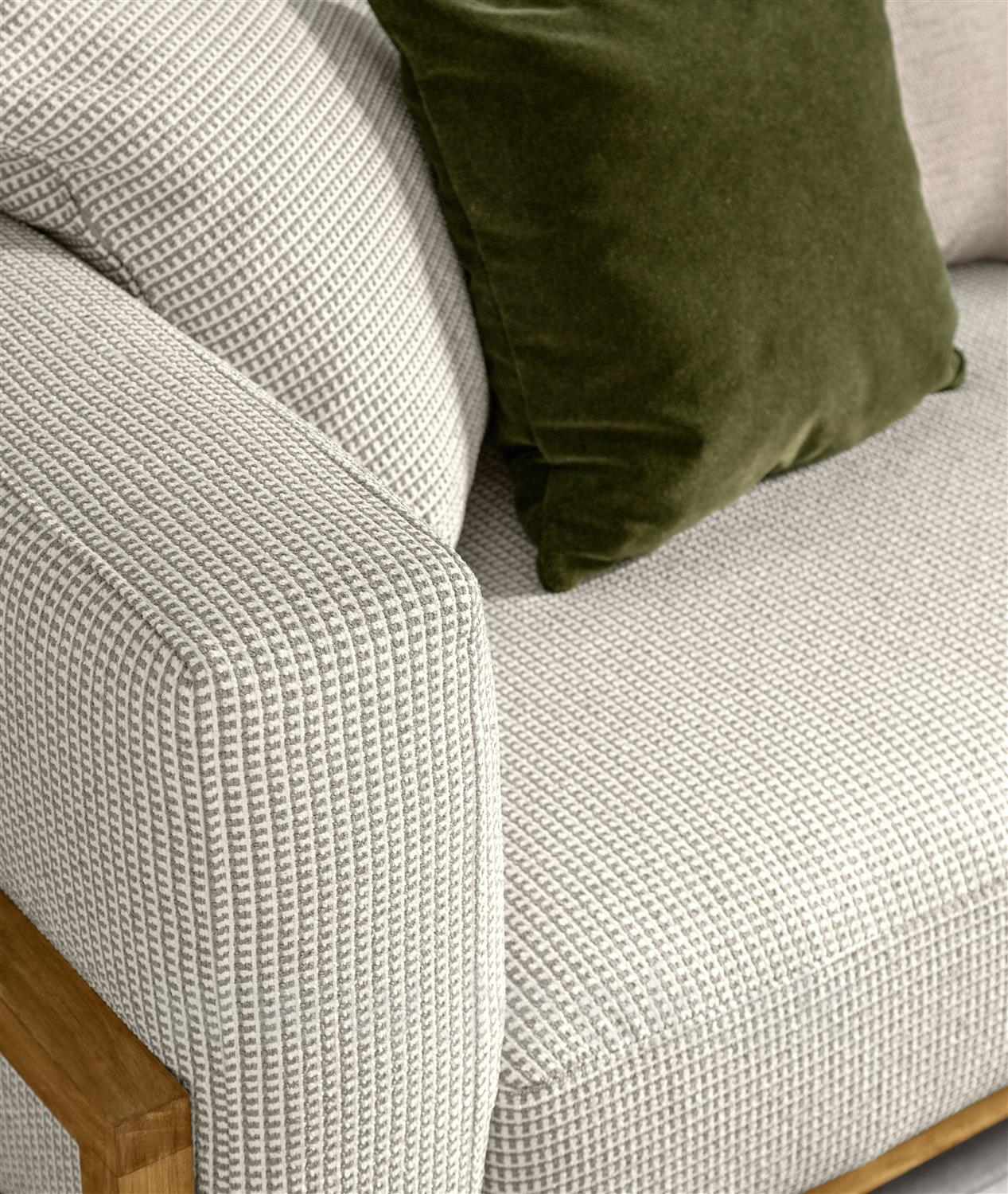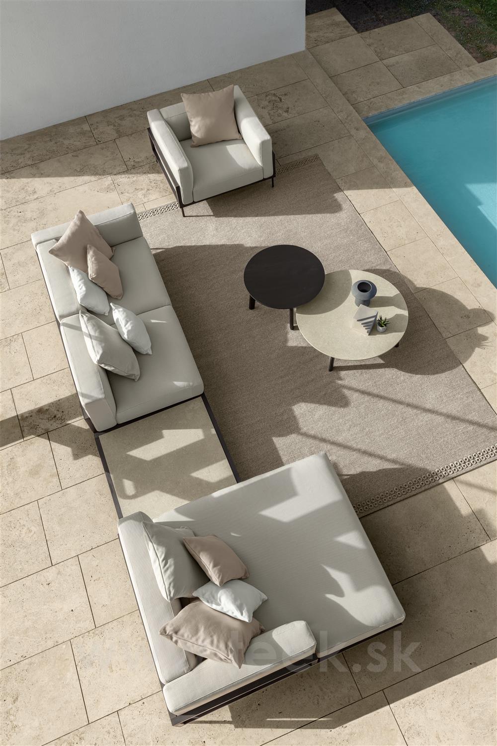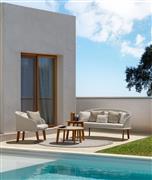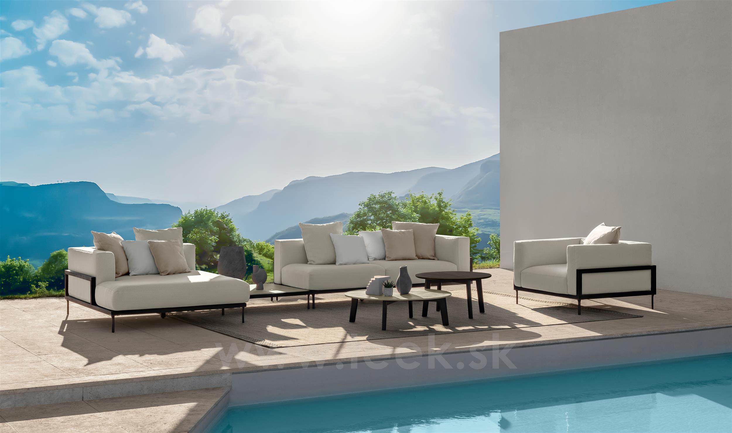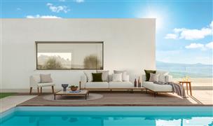 Dizajnová modulárna vonkajšia sedacia zostava z dreva accoya.