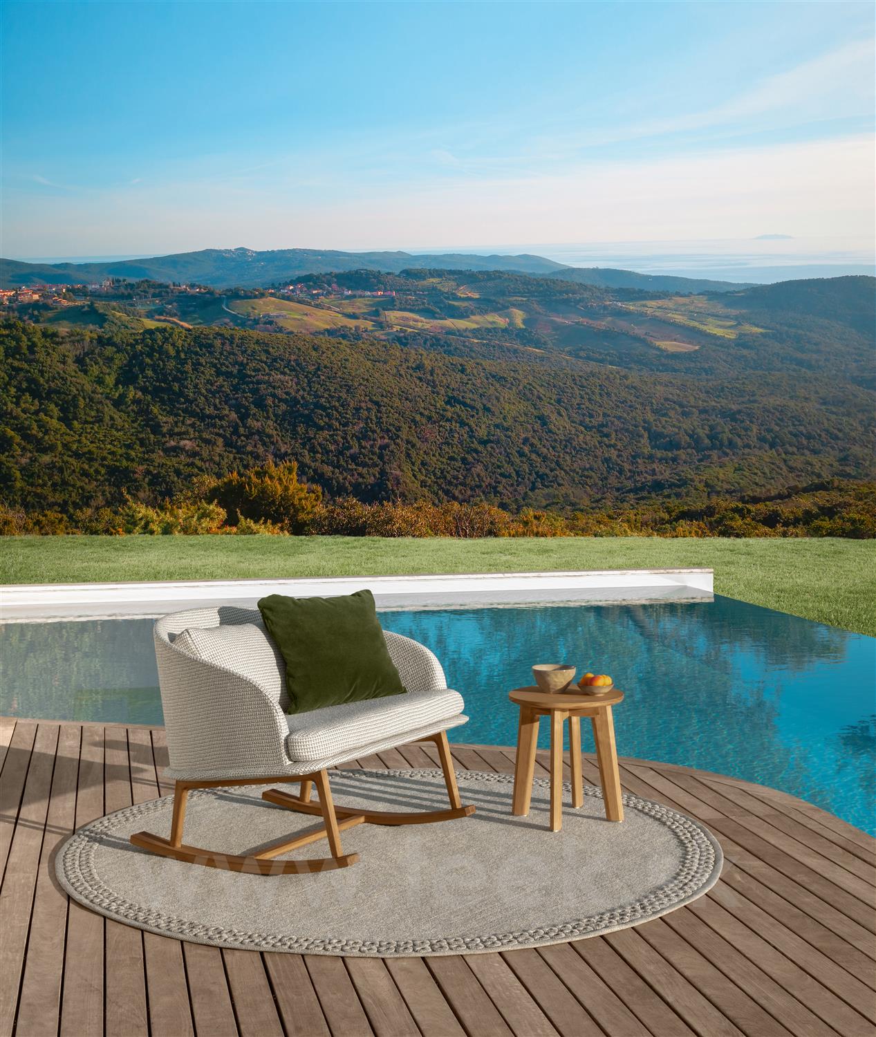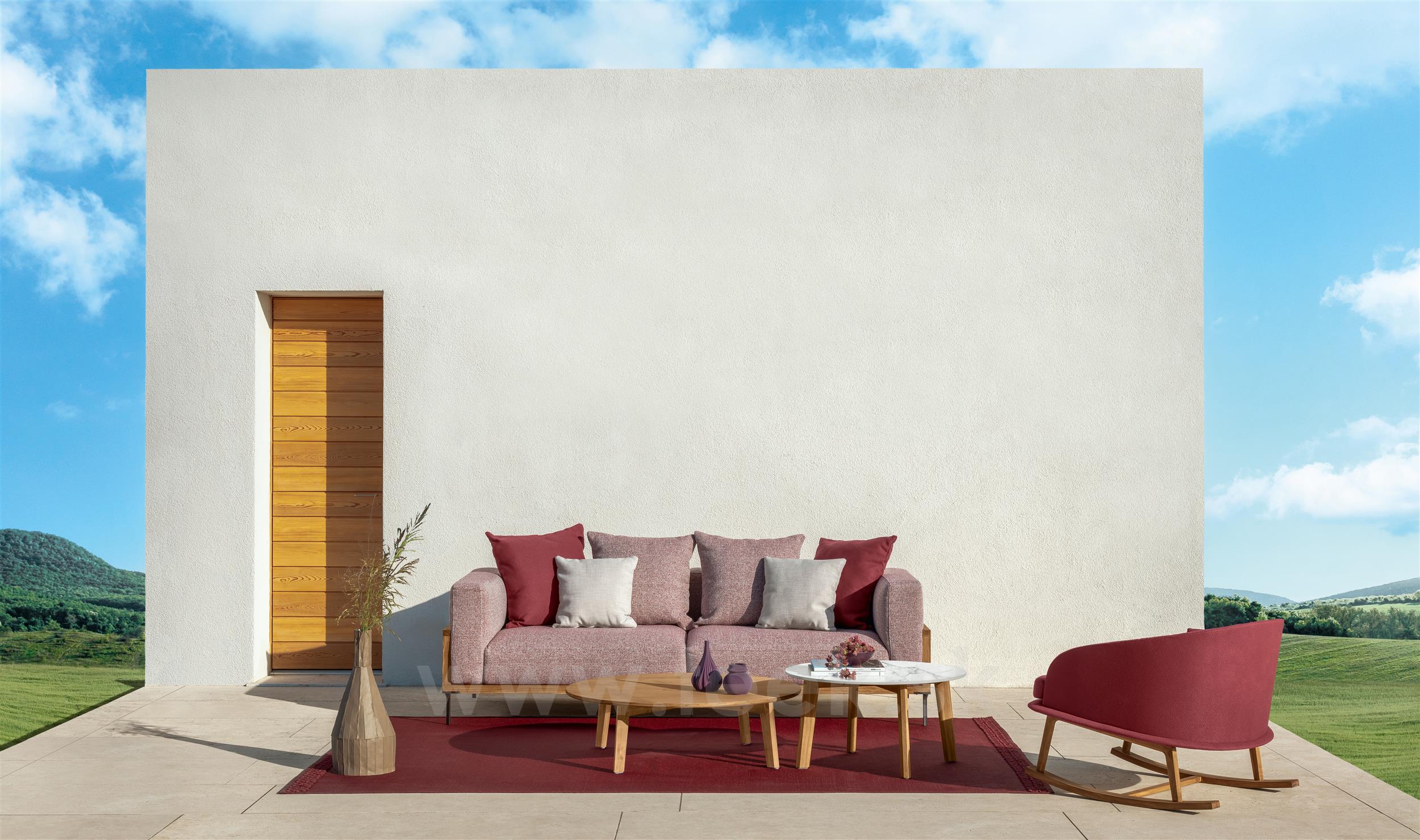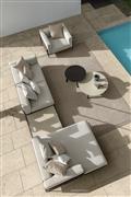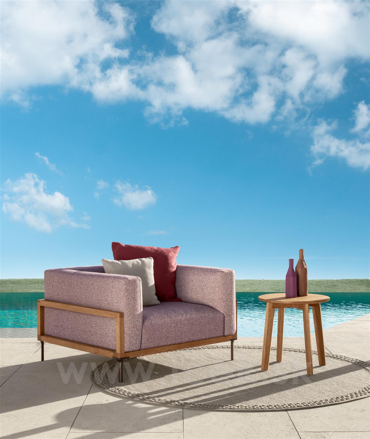 Dizajnová modulárna vonkajšia sedacia zostava z dreva accoya.
