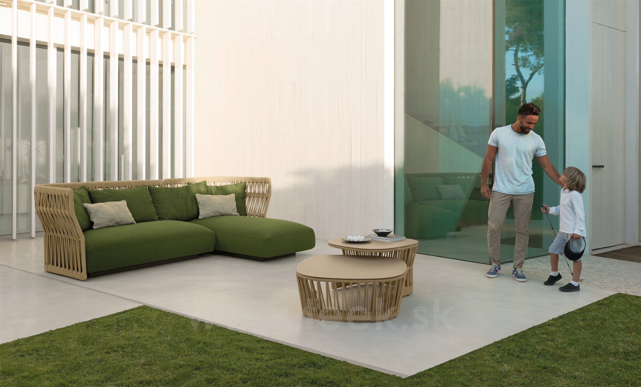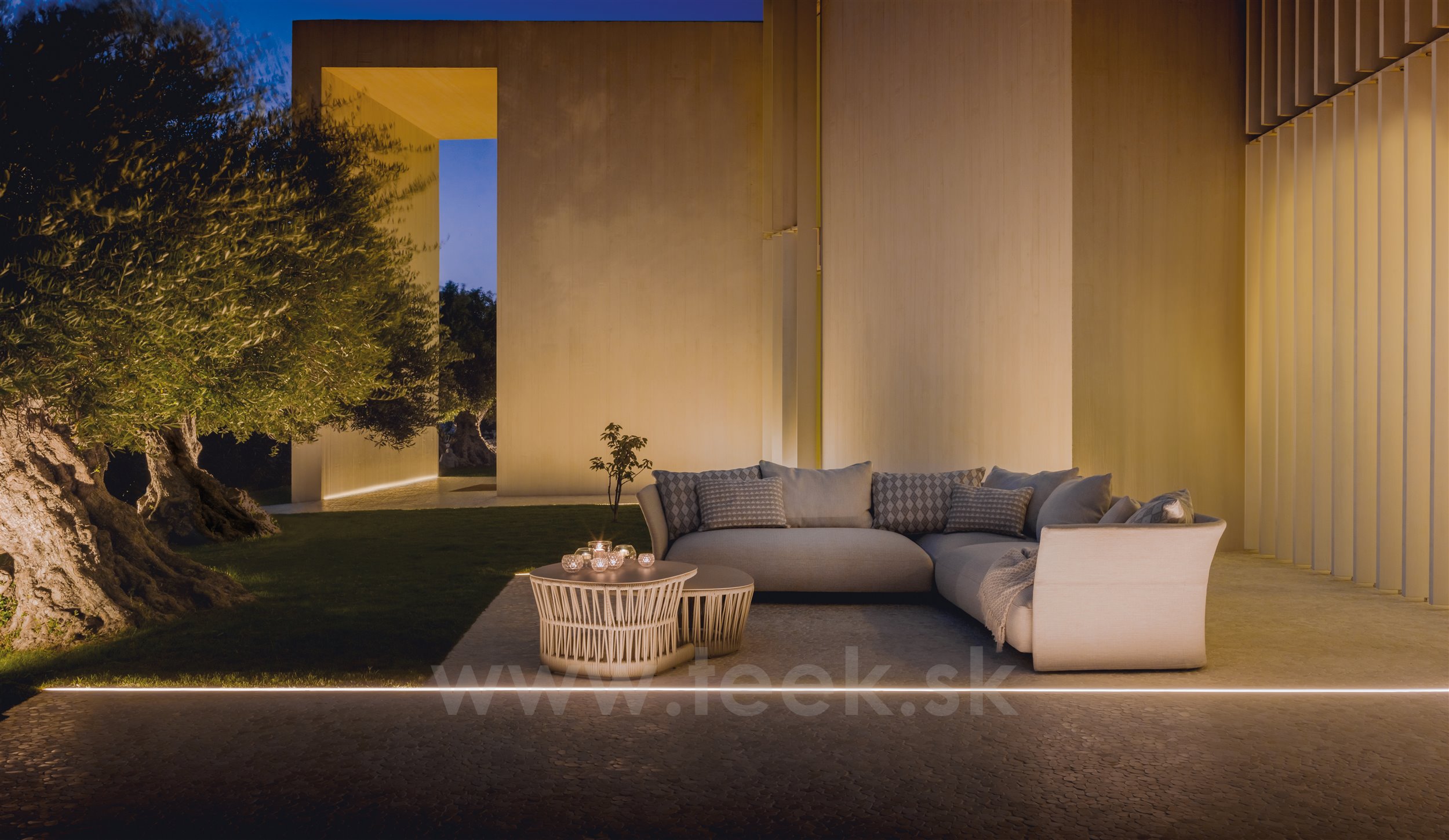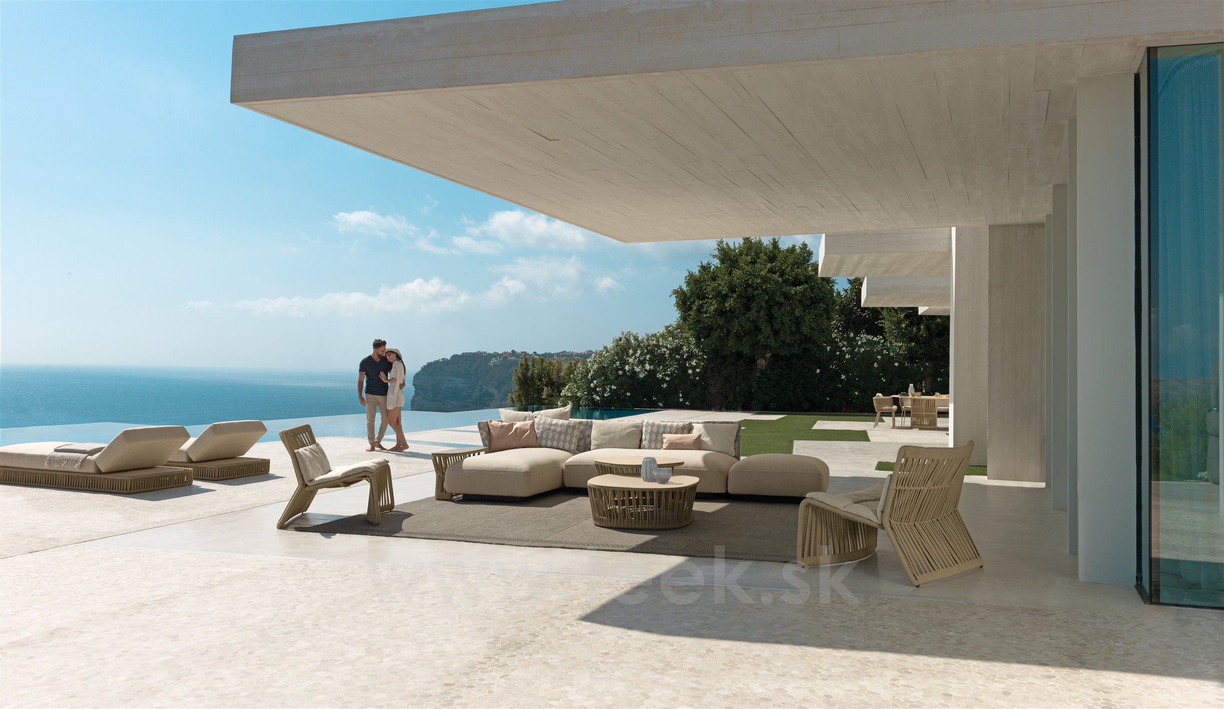 Dizajnová modulárna vonkajšia sedacia zostava.
