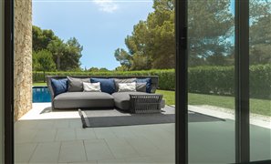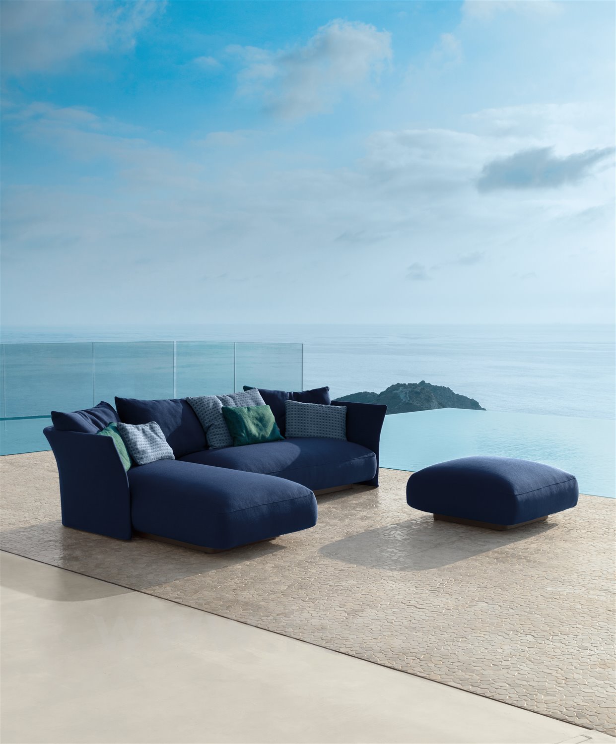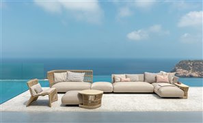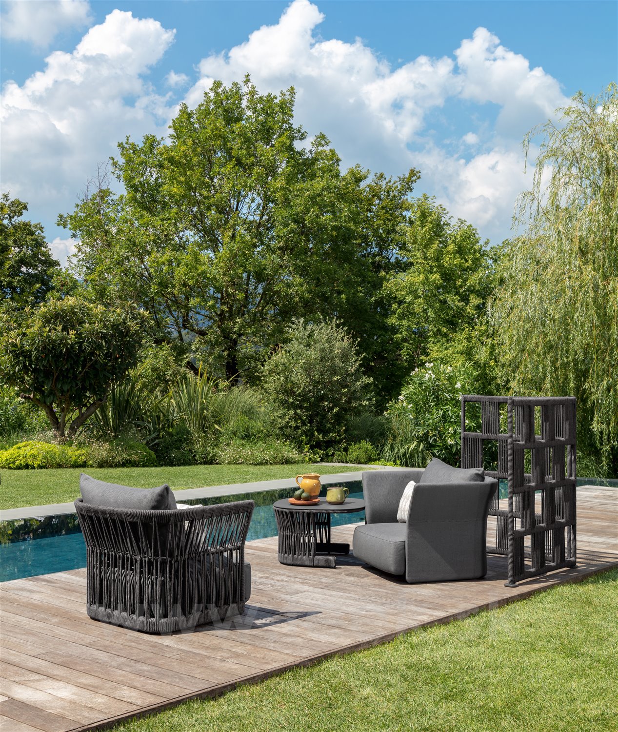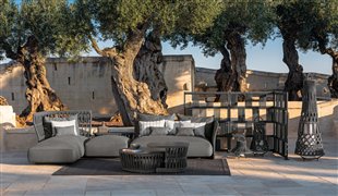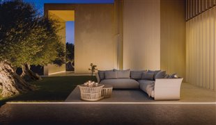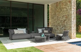 Dizajnová modulárna vonkajšia sedacia zostava.