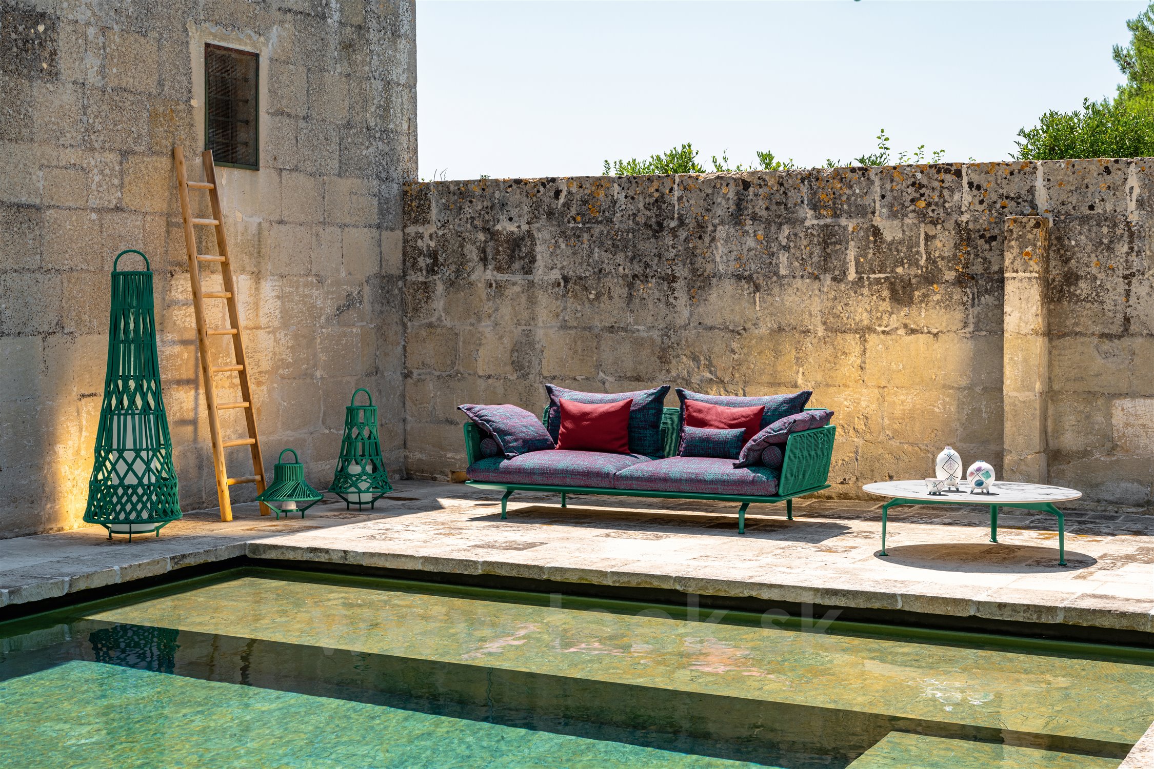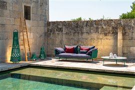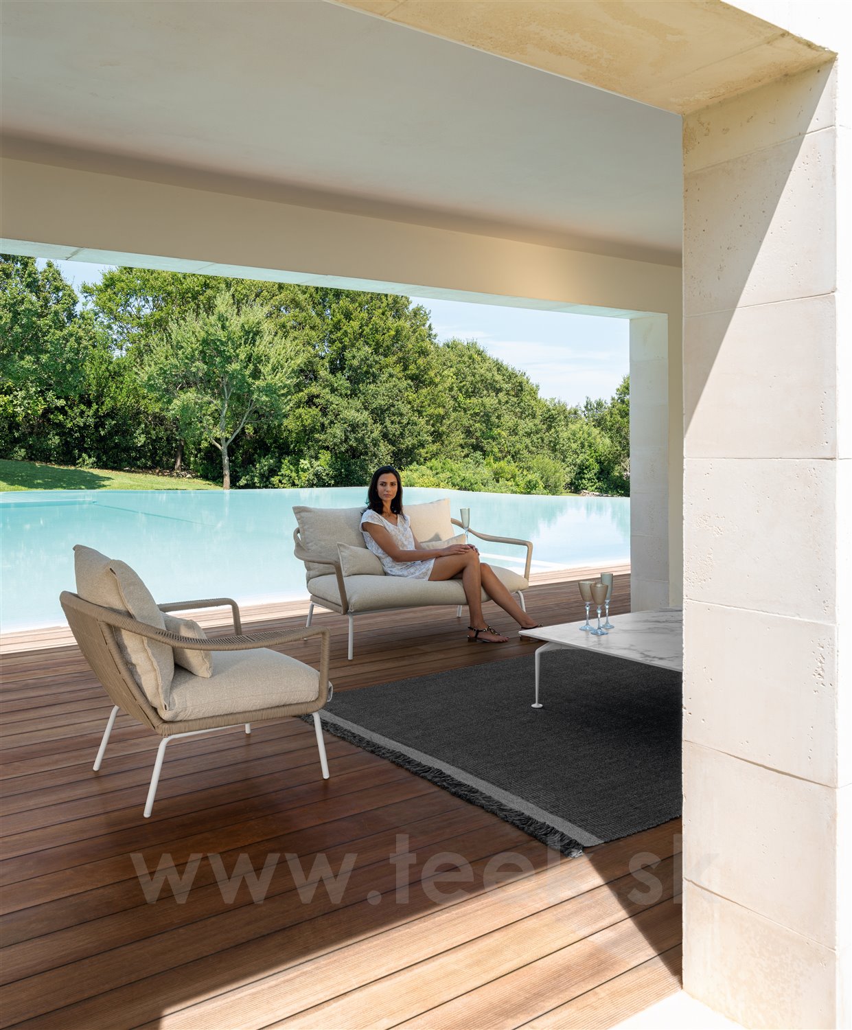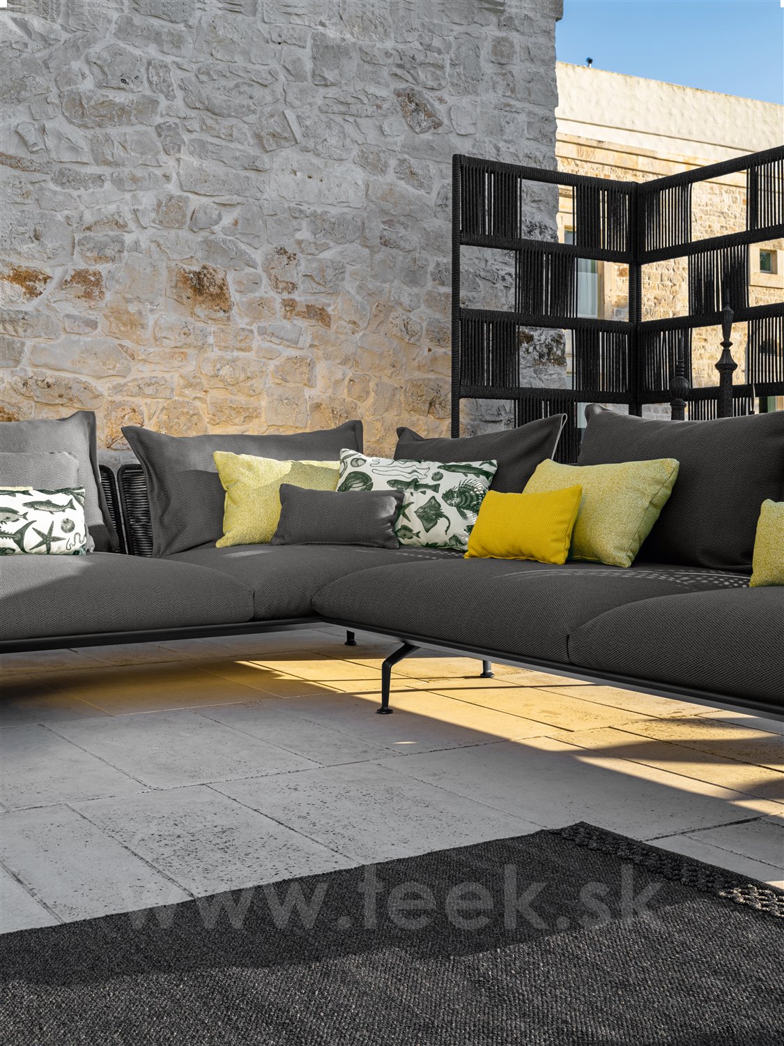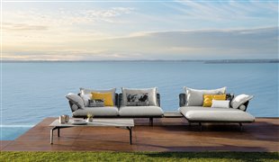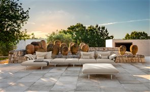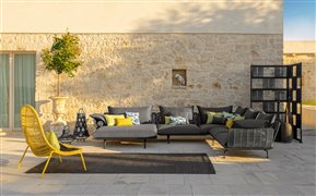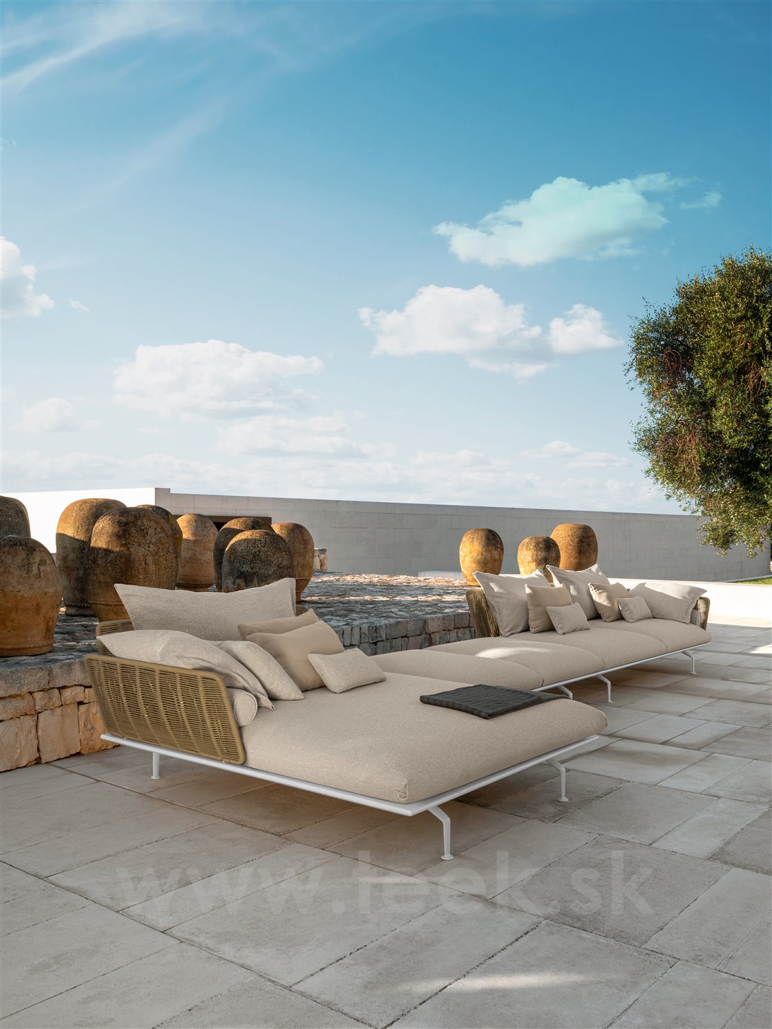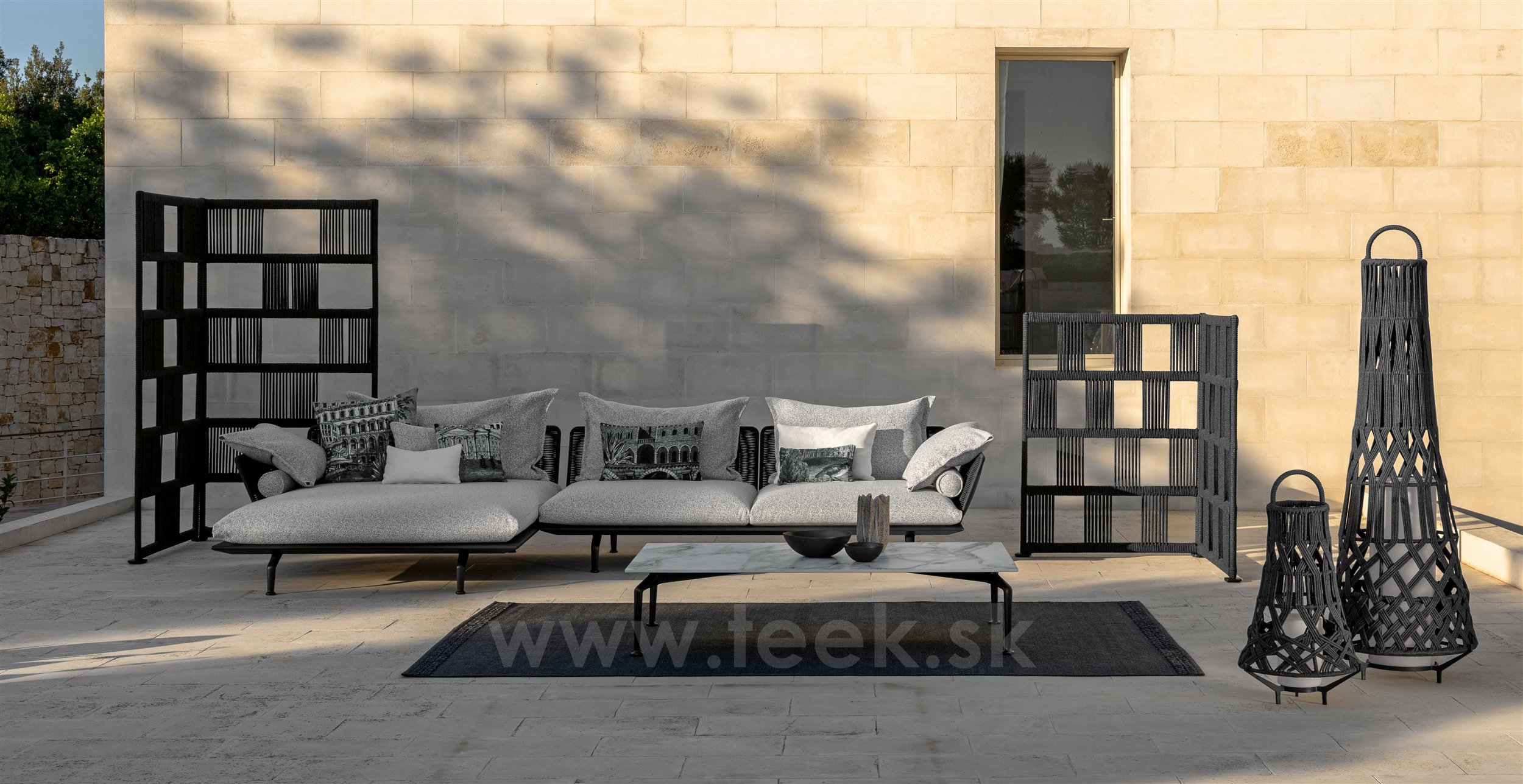 Dizajnová modulárna vonkajšia sedacia zostava.