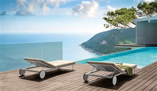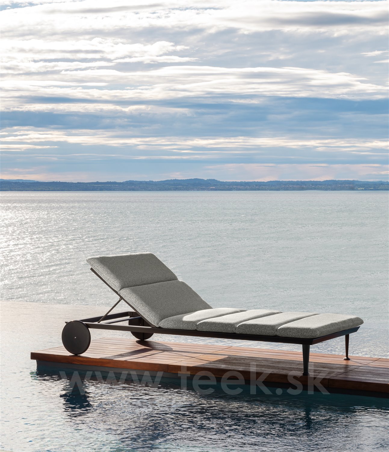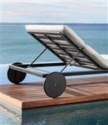 Dizajnové polohovacie ležadlo s kolieskami.