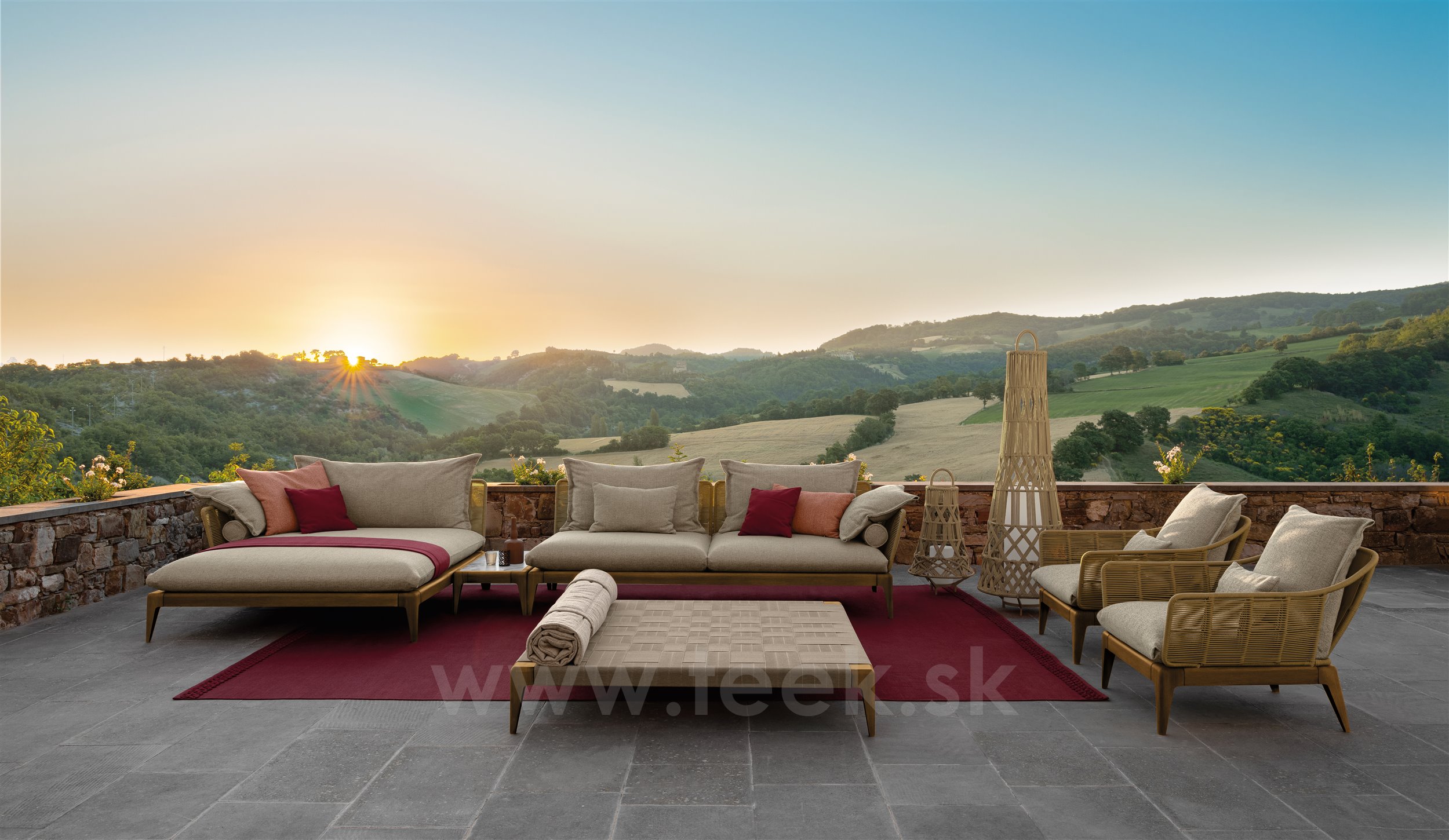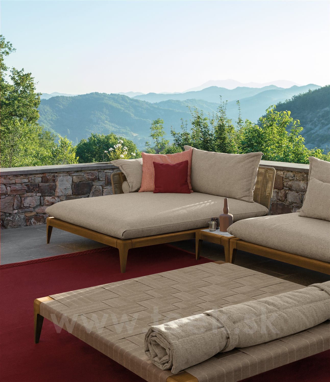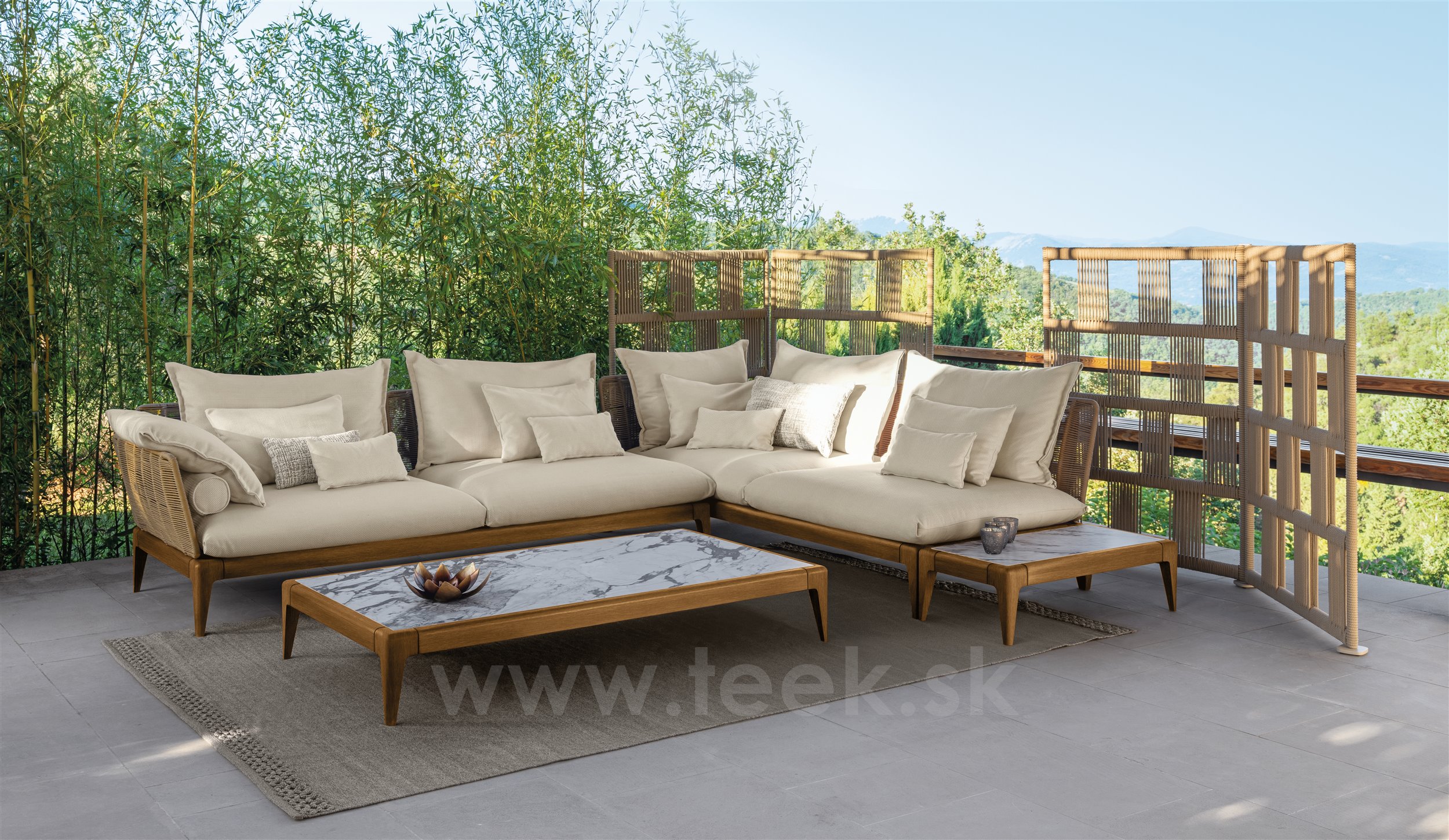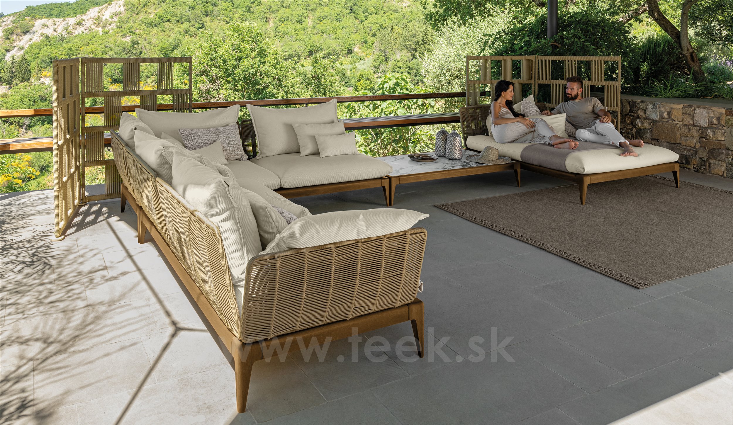 Dizajnová modulárna vonkajšia sedacia súprava.
