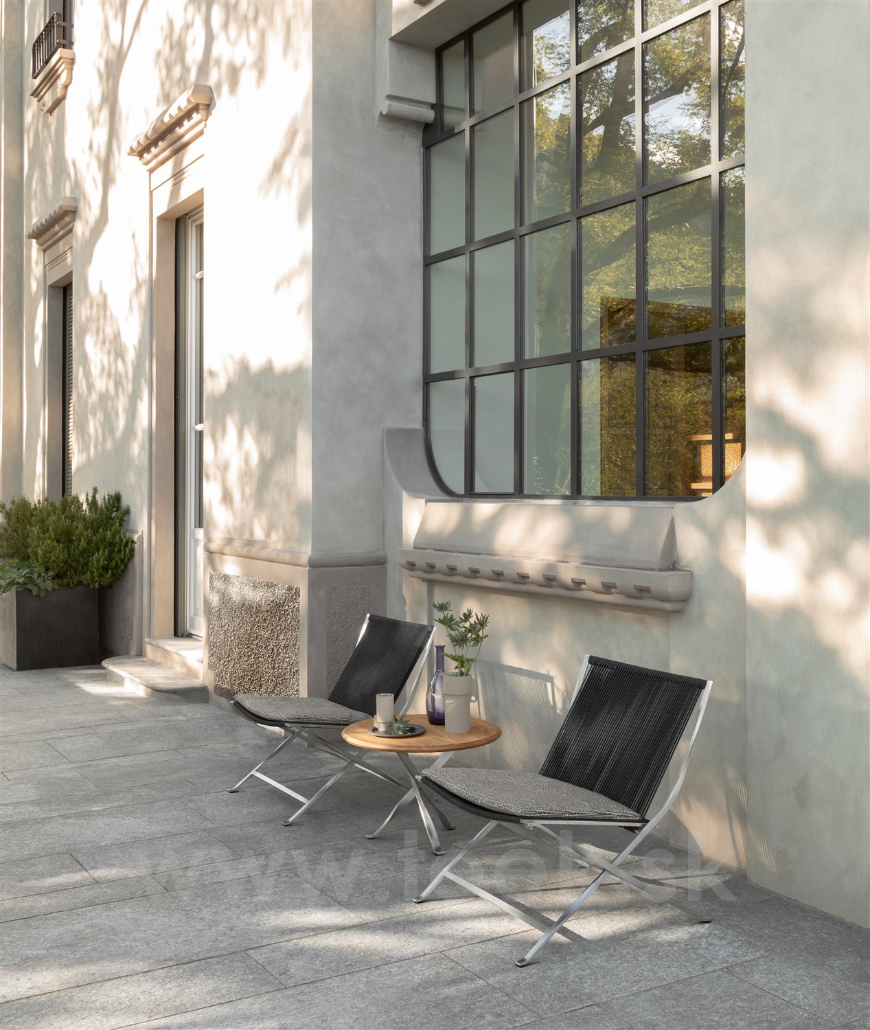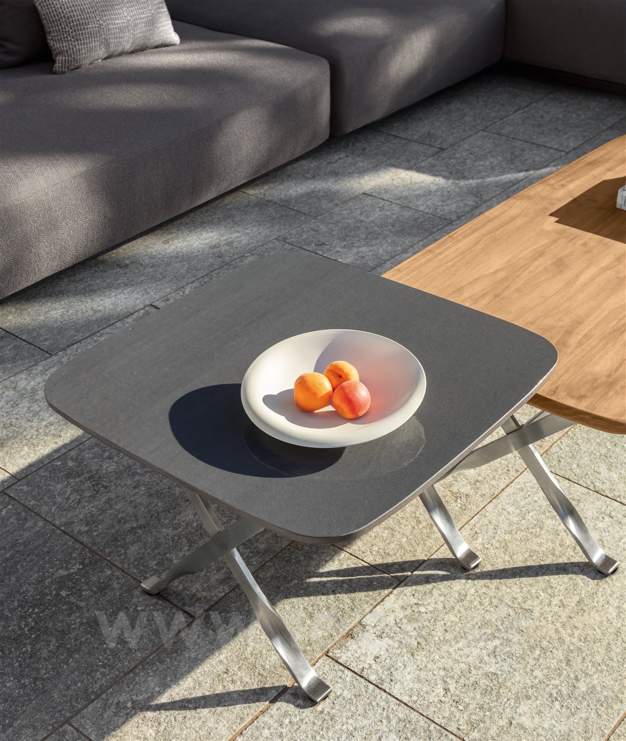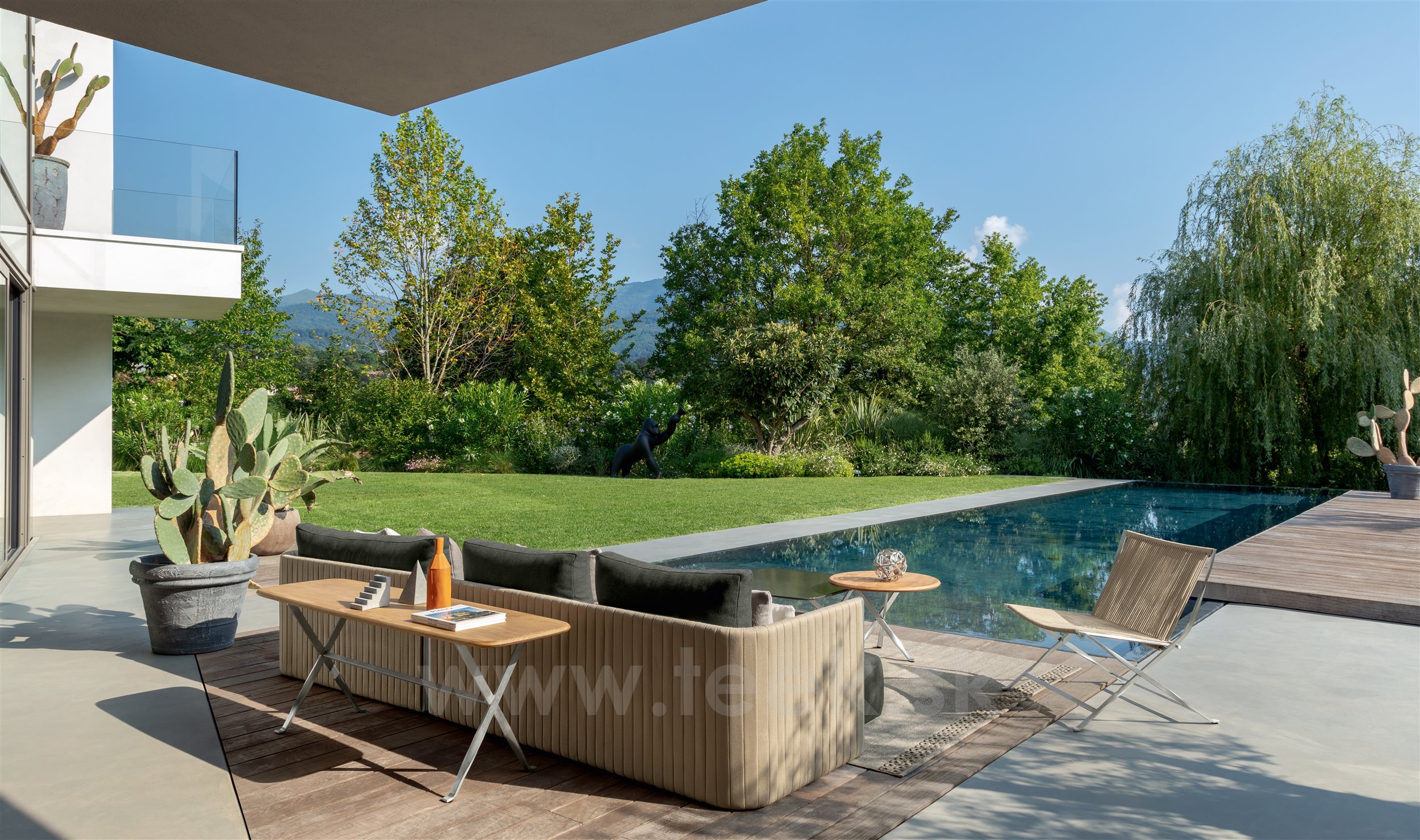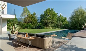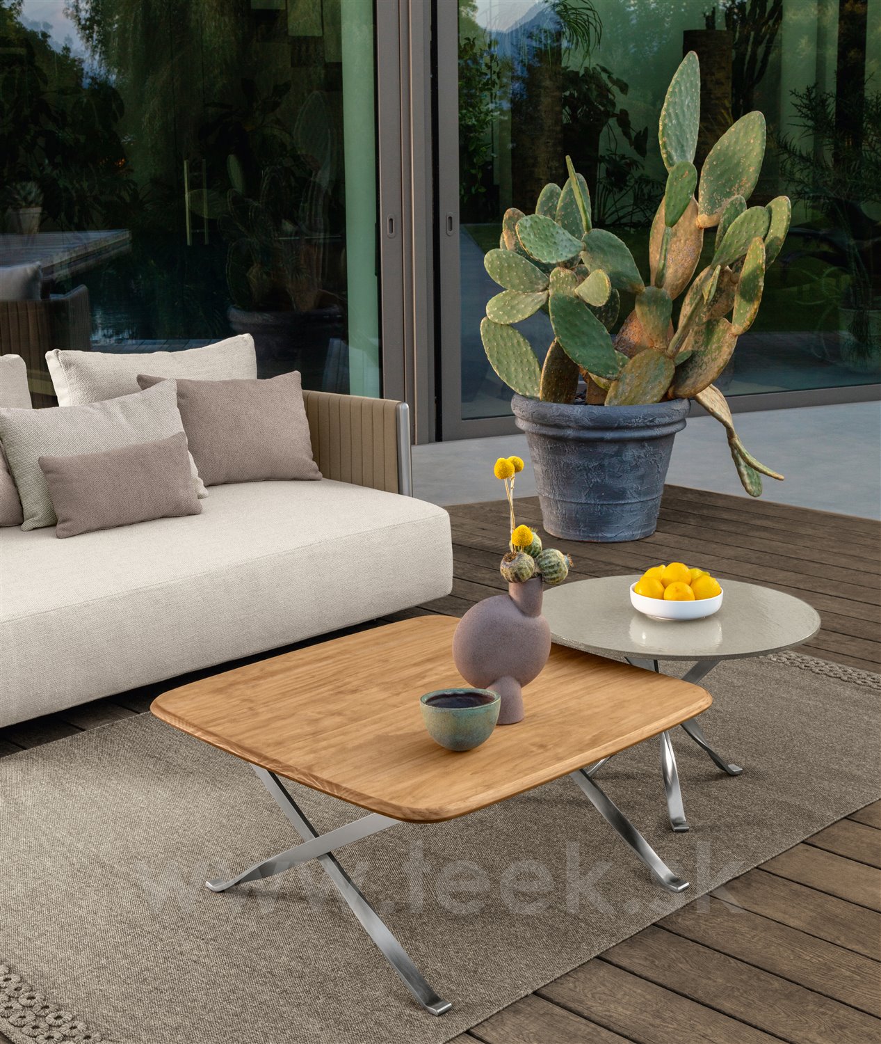 Dizajnová modulárna vonkajšia sedacia zostava.