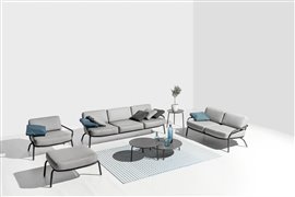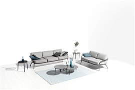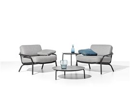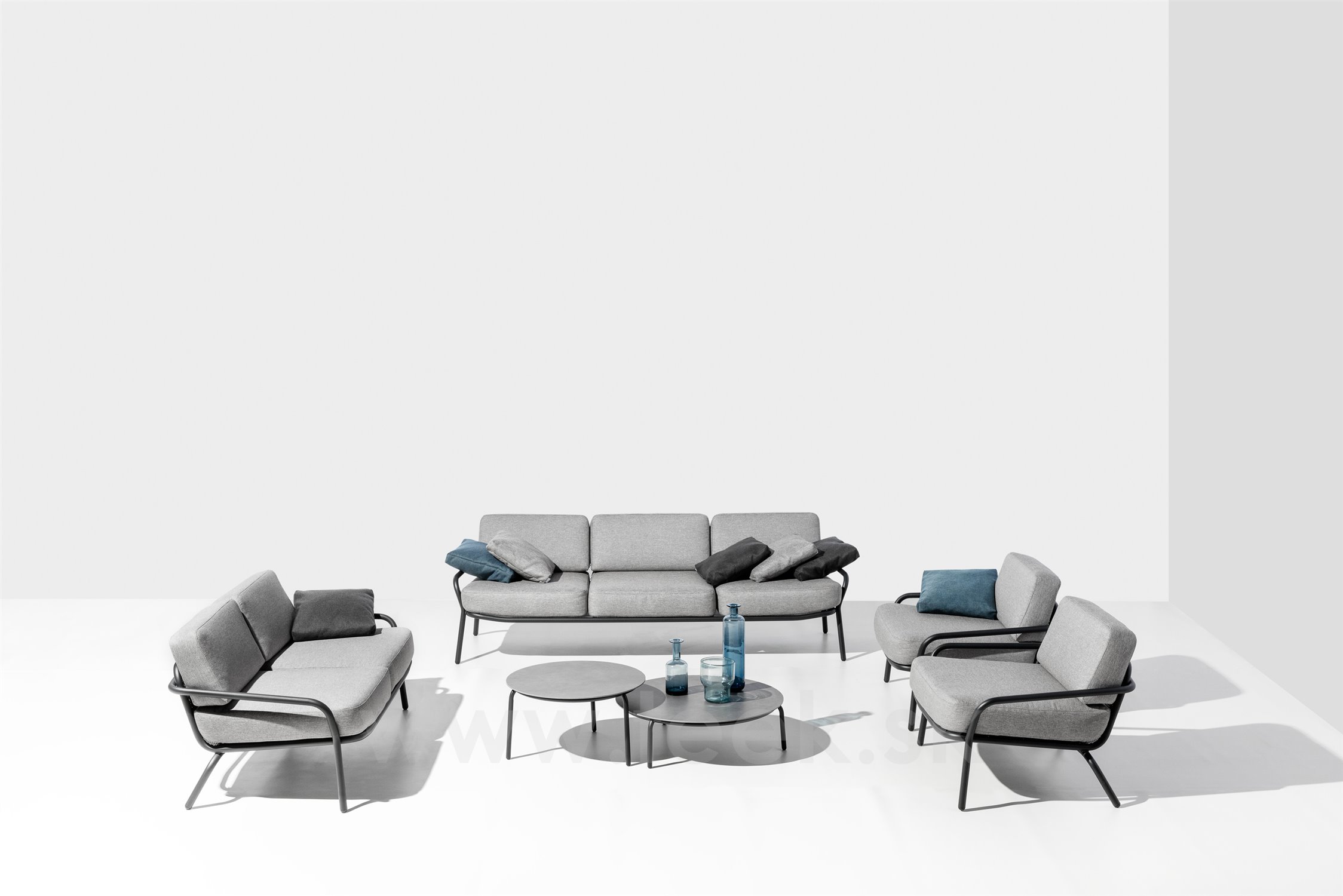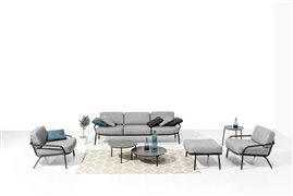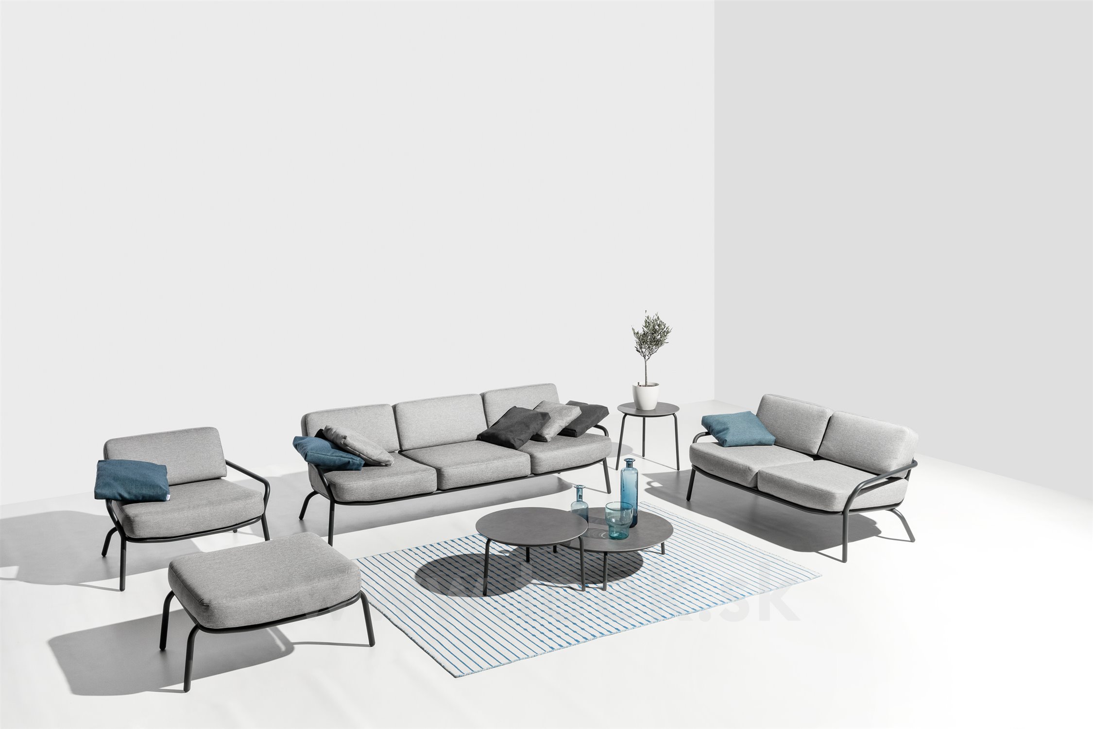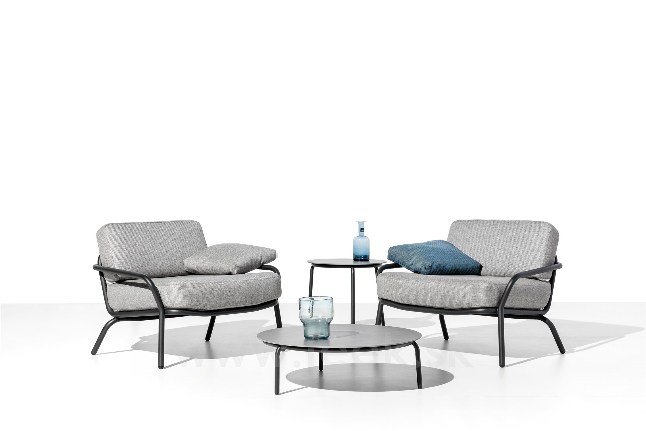 Záhradný dizajnový nábytok Starling od českej značky Todus. Rám je vyrobený z lakovanej nehrdzavejúcej ocele, vankúše na sedenie sú z outdoorovej tkaniny (Crevin) s výplňou z rýchloschnúcej peny, vďaka ktorej môže byť záhradný nábytok vonku po celý rok bez potreby chrániť ho pred dažďom. Kolekcia zahŕňa nízke záhradné kreslo a rôzne veľkosti pohoviek, odkladacích a konferenčných stolíkov s doskami z rôznych materiálov/farieb.