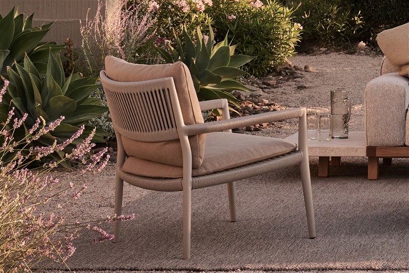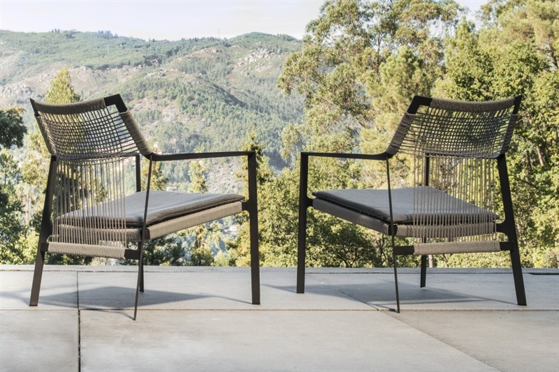 Subtílne a pritom pohodlné nízke vonkajšie kreslo s lankovým výpletom.