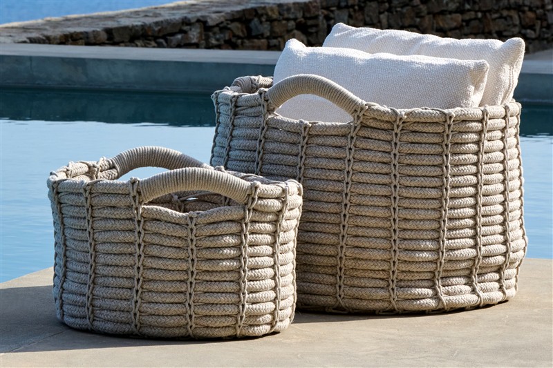 Originálna vonkajšia kolekcia z teakového dreva a lanového výpletu vrátane čalúnenia.