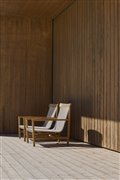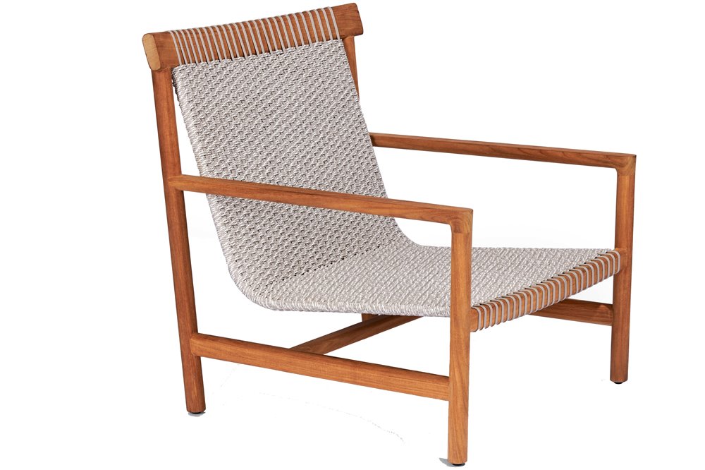 Vonkajší nábytok s teakovým rámom a lanovým výpletom.