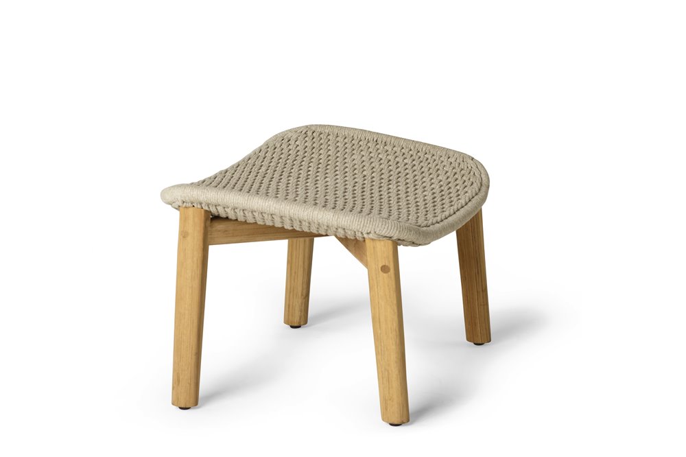 Kolekcia dizajnového vonkajšieho sedacieho nábytku Elio od spoločnosti Tribu. Rám nábytku je vyrobený z teakového dreva s efektným káblovým výpletom.