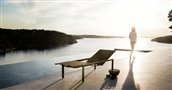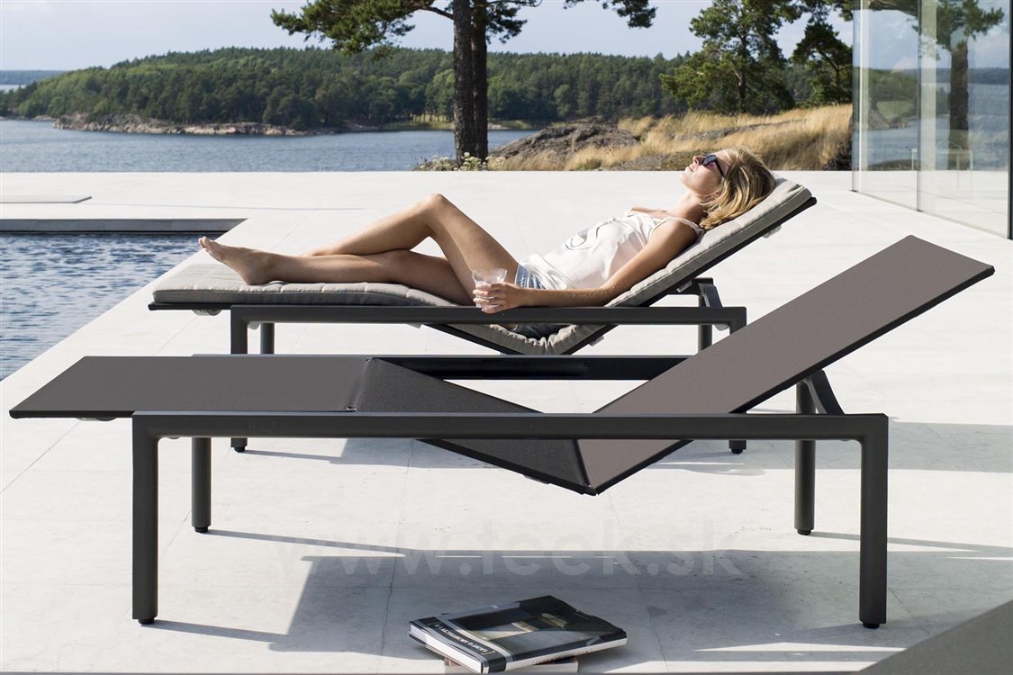 Relaxačné vonkajšie ležadlo Illum od spoločnosti Tribu s textilnou tkaninou (Batyline).