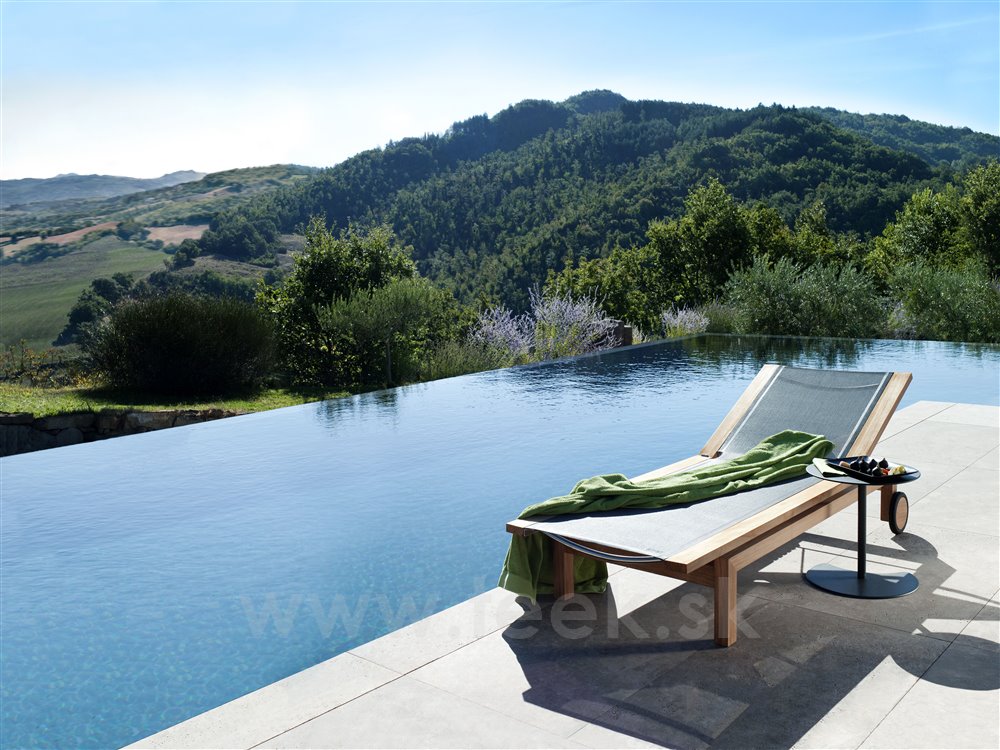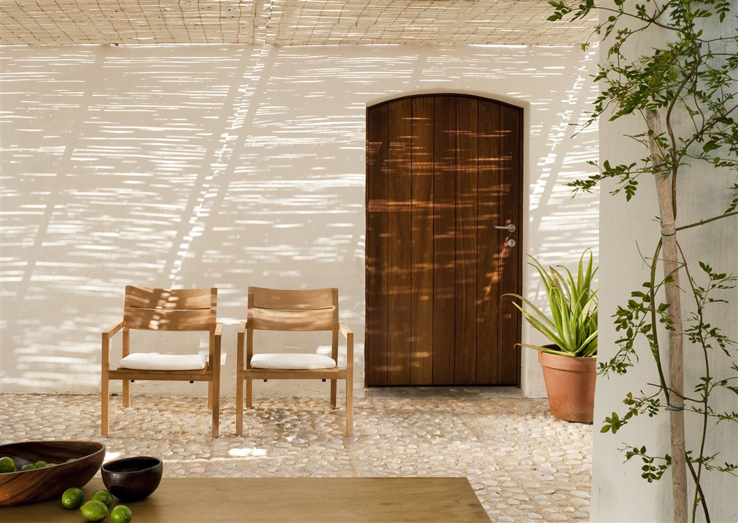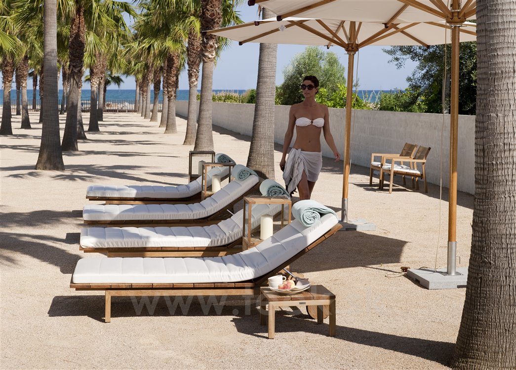 Kolekcia vonkajšieho relaxačného nábytku Kos Teak od spoločnosti Tribu. Všetok nábytok z tejto kolekcie má konštrukciu z masívneho teakového dreva.