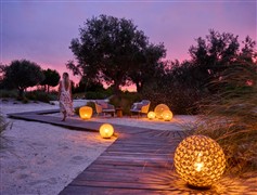 Vonkajšie dizajnové svetlá Monsieur Tricot značky Tribu. V ponuke v niekoľkých farbách. Dajú sa ovládať mobilnou aplikáciou alebo manuálne cez tlačidlo na svietidle.