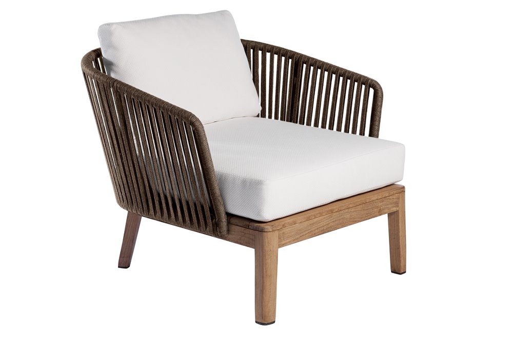 Kolekcia vonkajšieho sedenia Mood od spoločnosti Tribu. Konštrukcia nábytku je vyrobená z teakového dreva v kombinácii s káblovým výpletom. Sedadlá v exteriérovej kvalite.