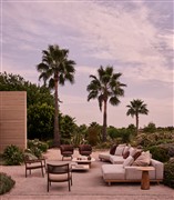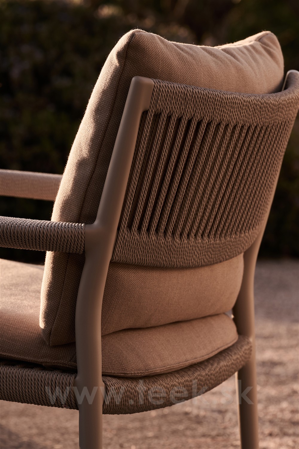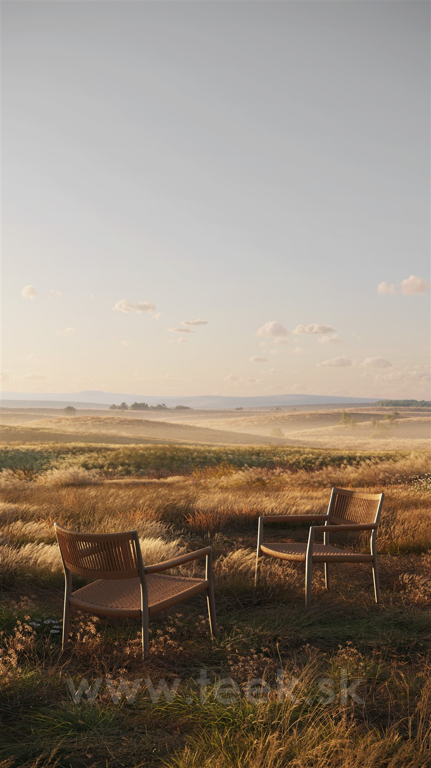 Dizajnové nízke vonkajšie kreslo s lankovým výpletom.