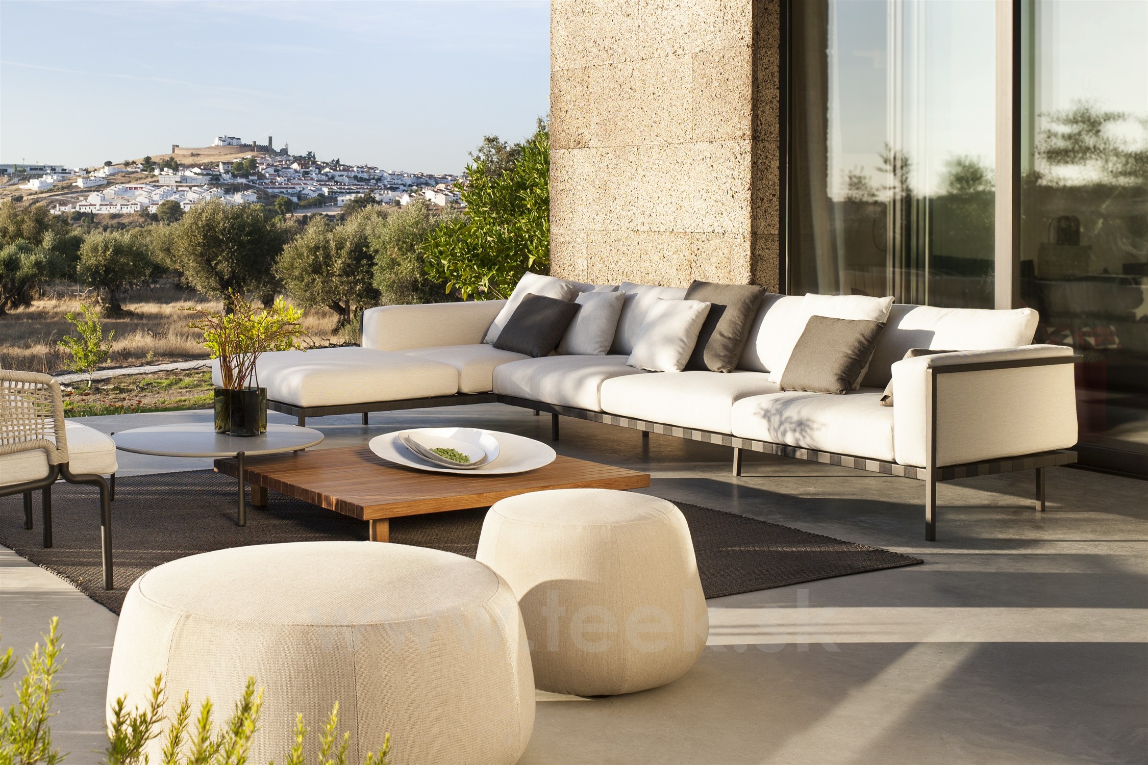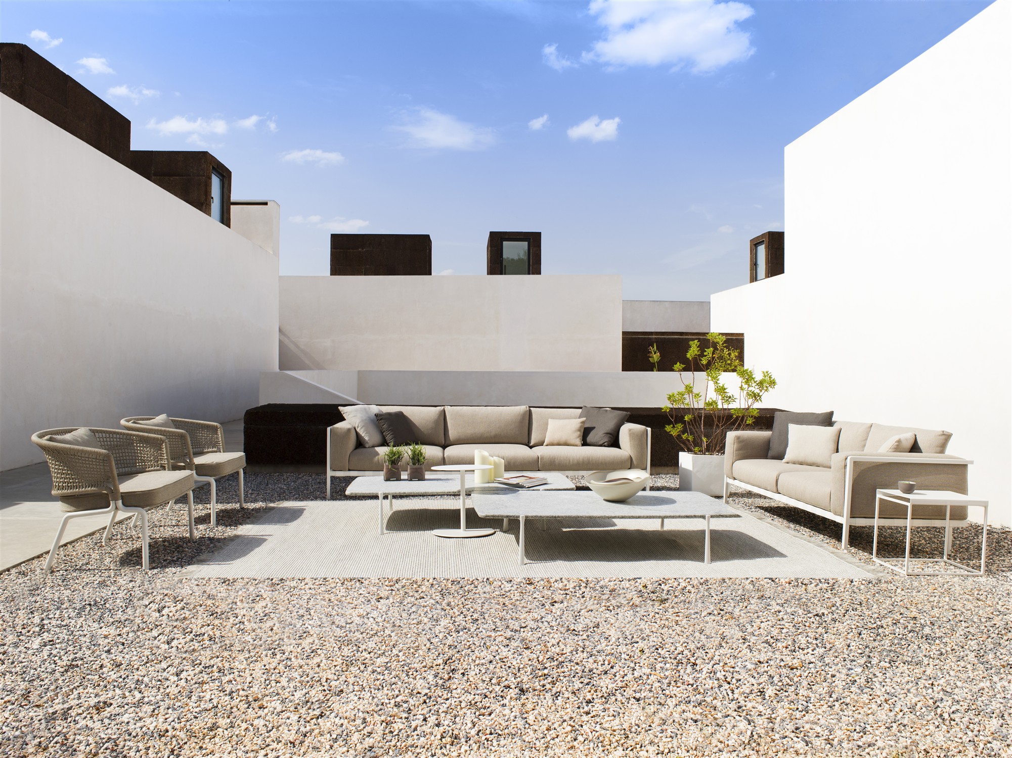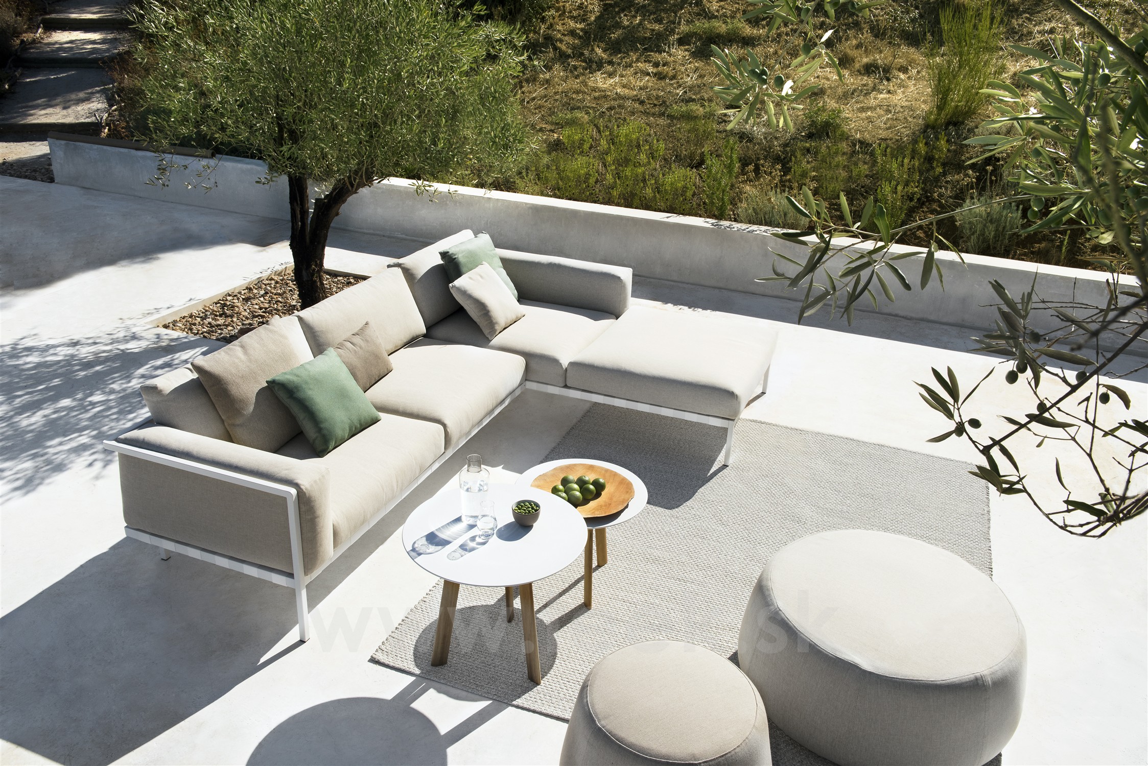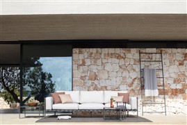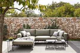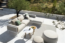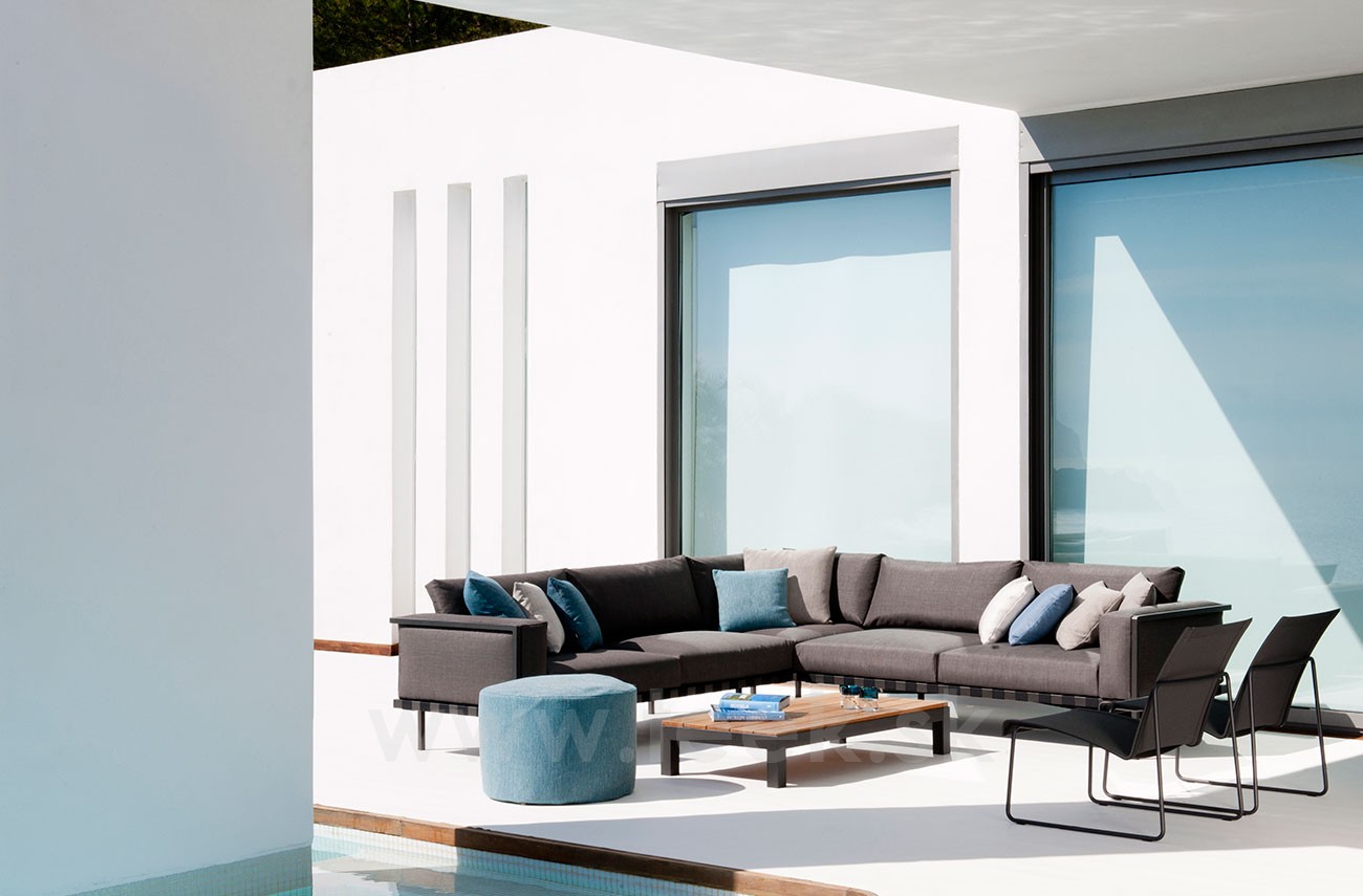 Modulárna vonkajšia sedacia súprava Natal Alu Sofa značky Tribu má odolný hliníkový rám a úplne vonkajšie poťahy. K dispozícii v ľubovoľnej konfigurácii podľa Vašej preferencie.