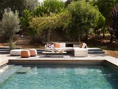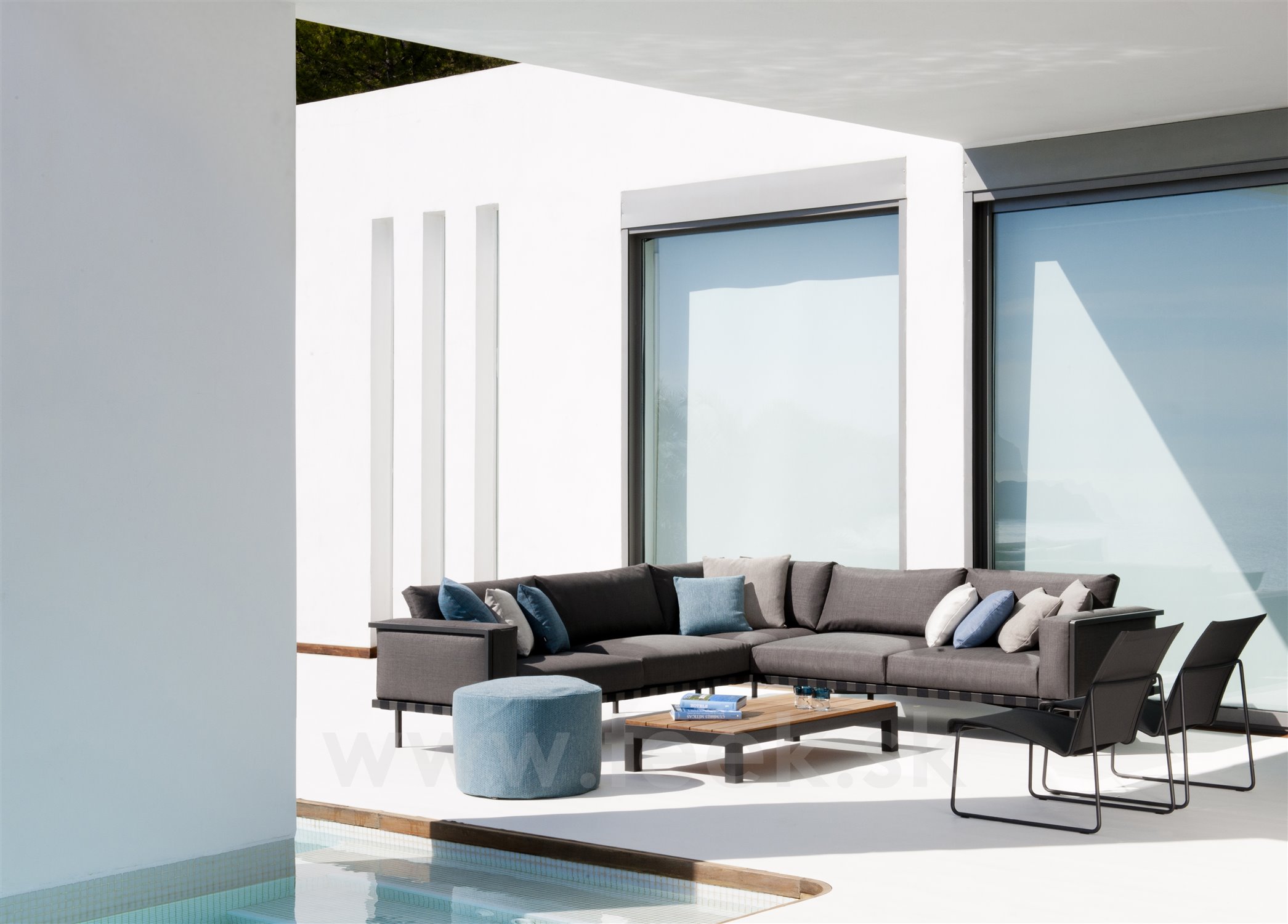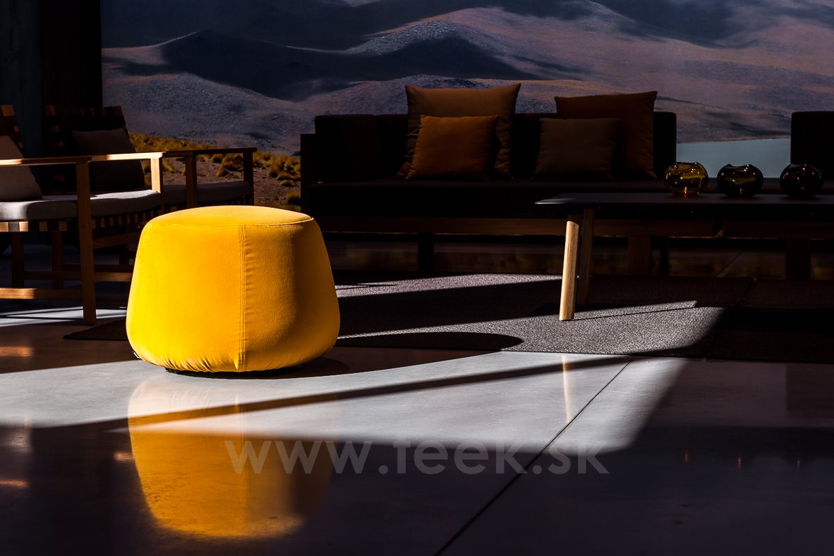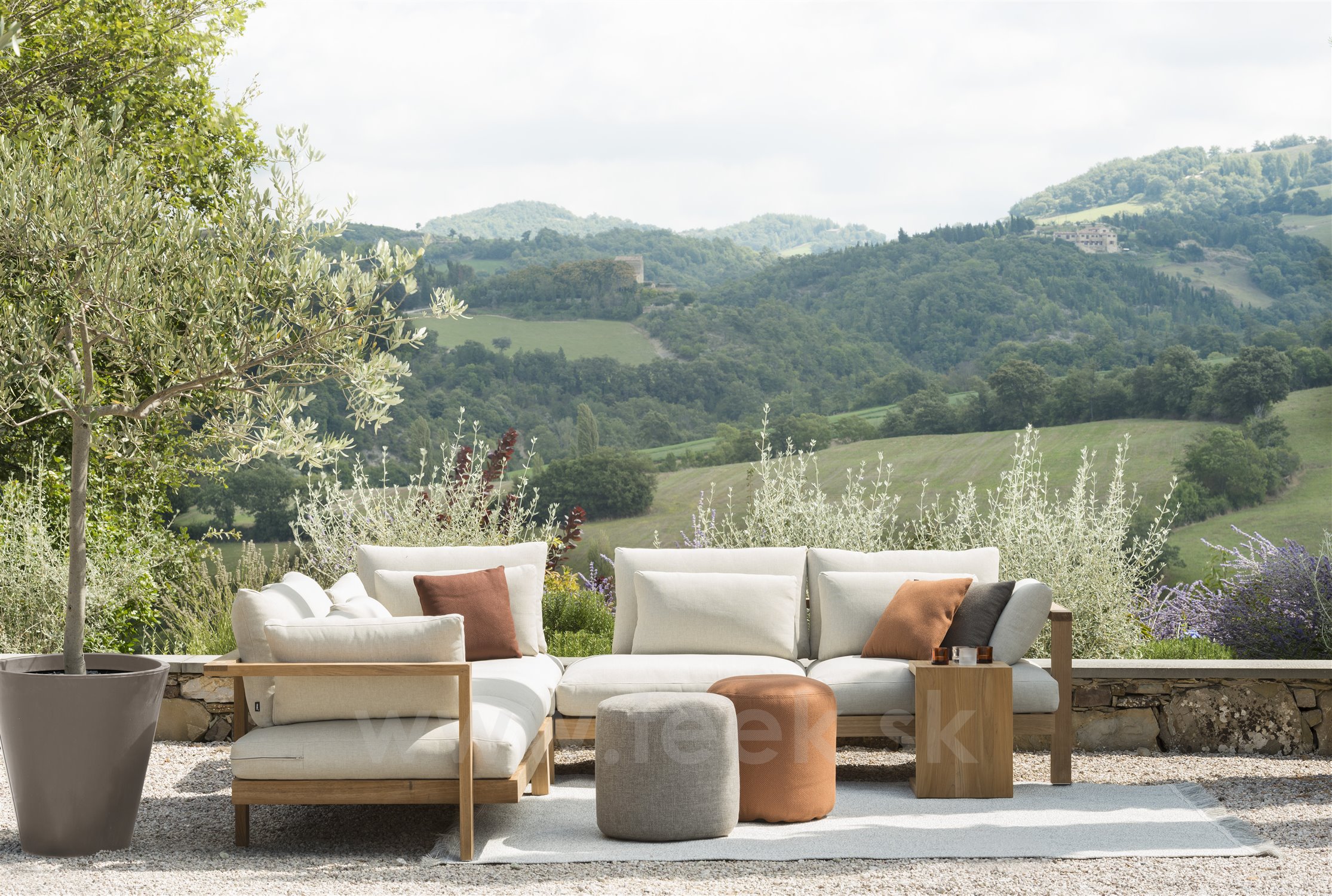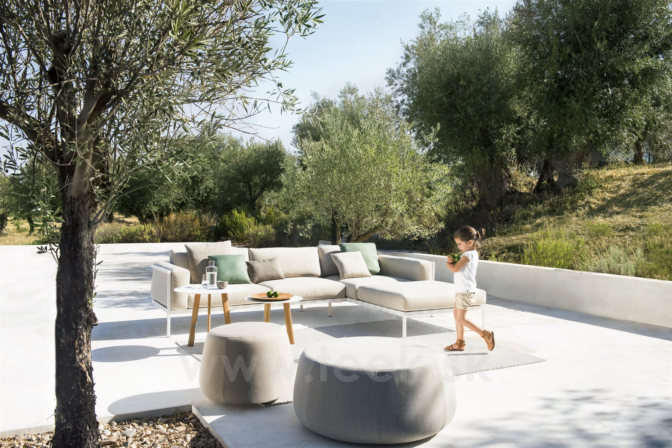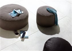 Vonkajšie pufy Tribu vyrobené z odolných tkanín na celoročné použitie.