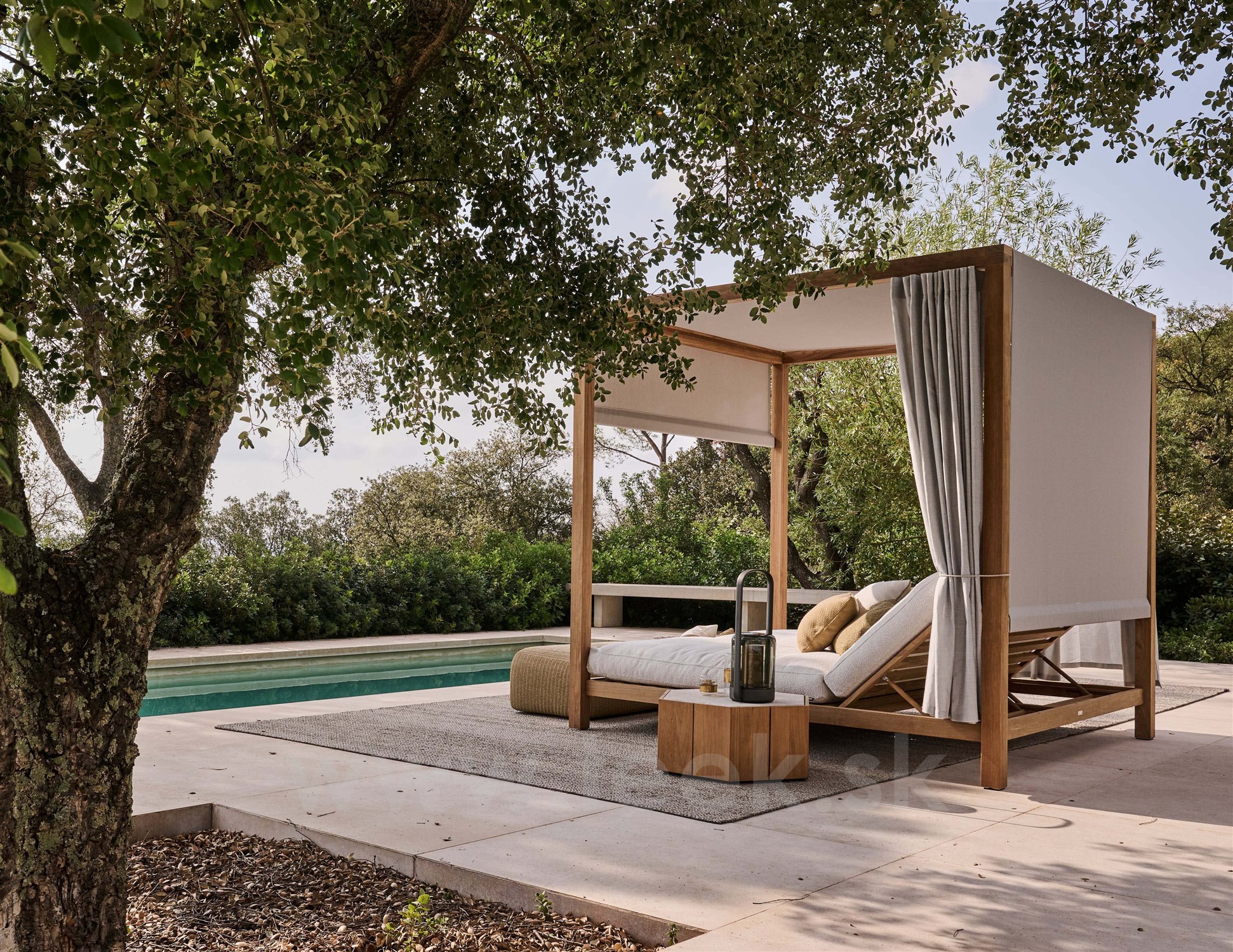 Luxusná vonkajšia teaková posteľ od Tribú.