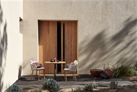 Vonkajšie jedálenské stoličky možno kombinovať s relaxačným vonkajším nábytkom