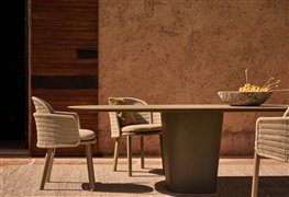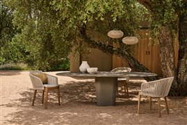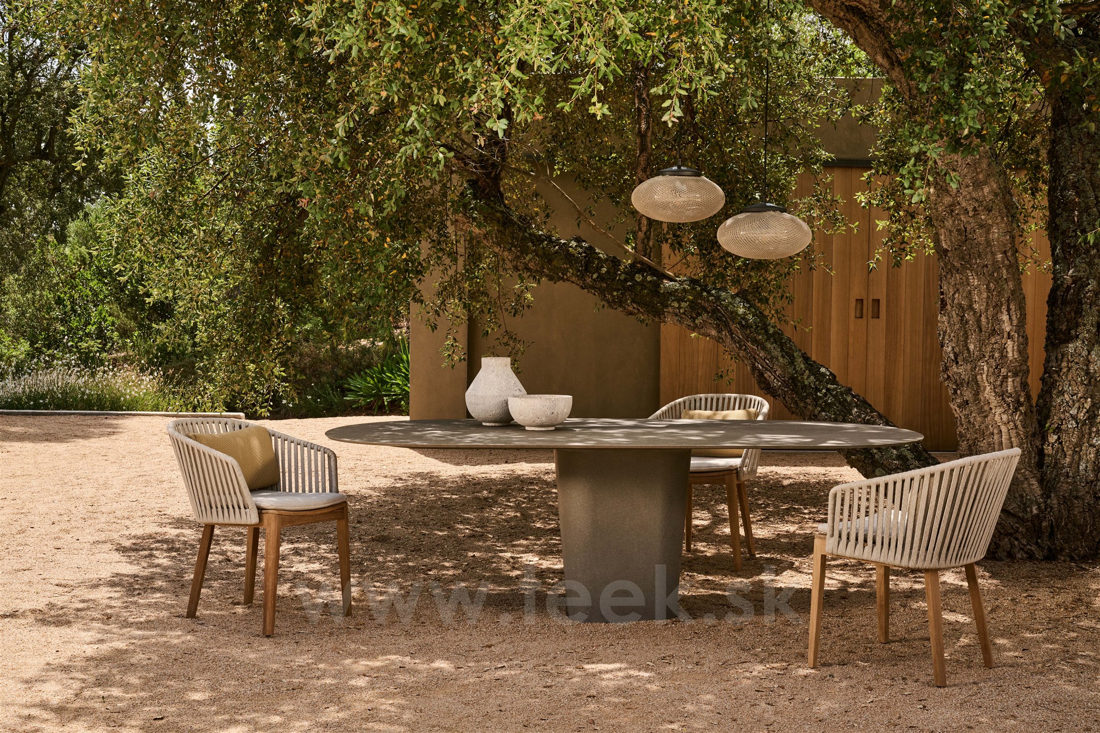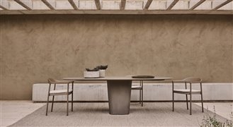 Outdoor tables Tao by Tribu. Collection of outdoor dining table and coffee table made of concrete.